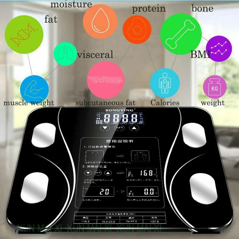 Bluetooth весы для тела и жира, умный беспроводной цифровой монитор веса, анализатор здоровья