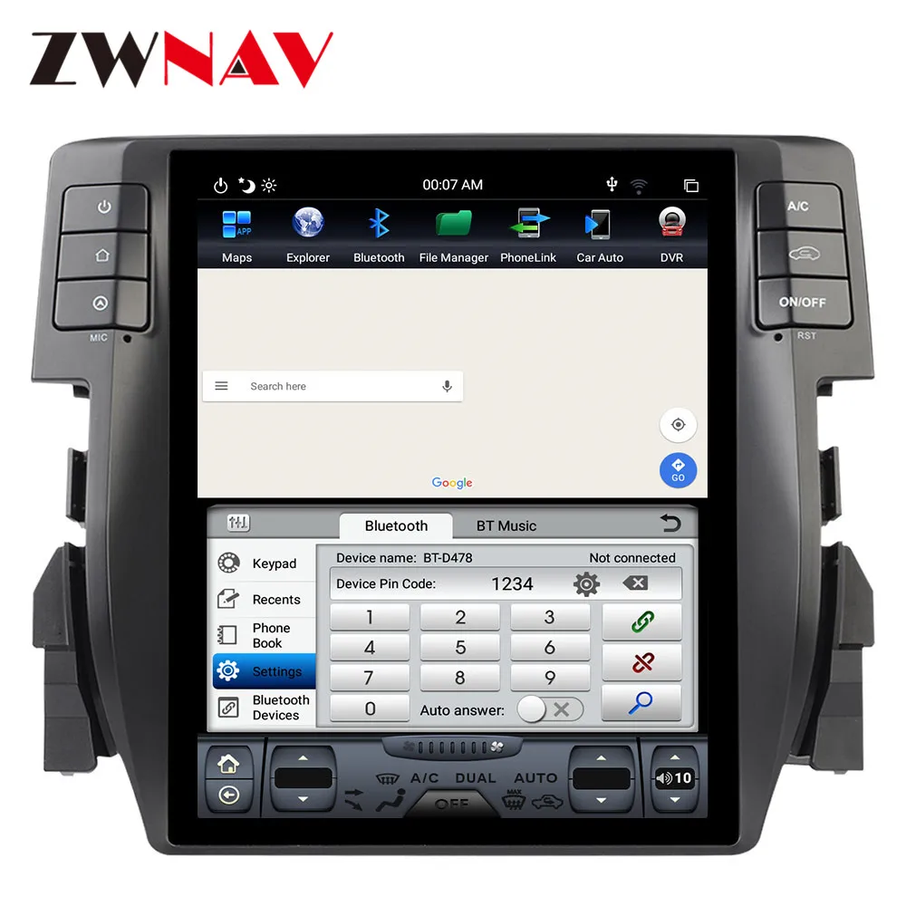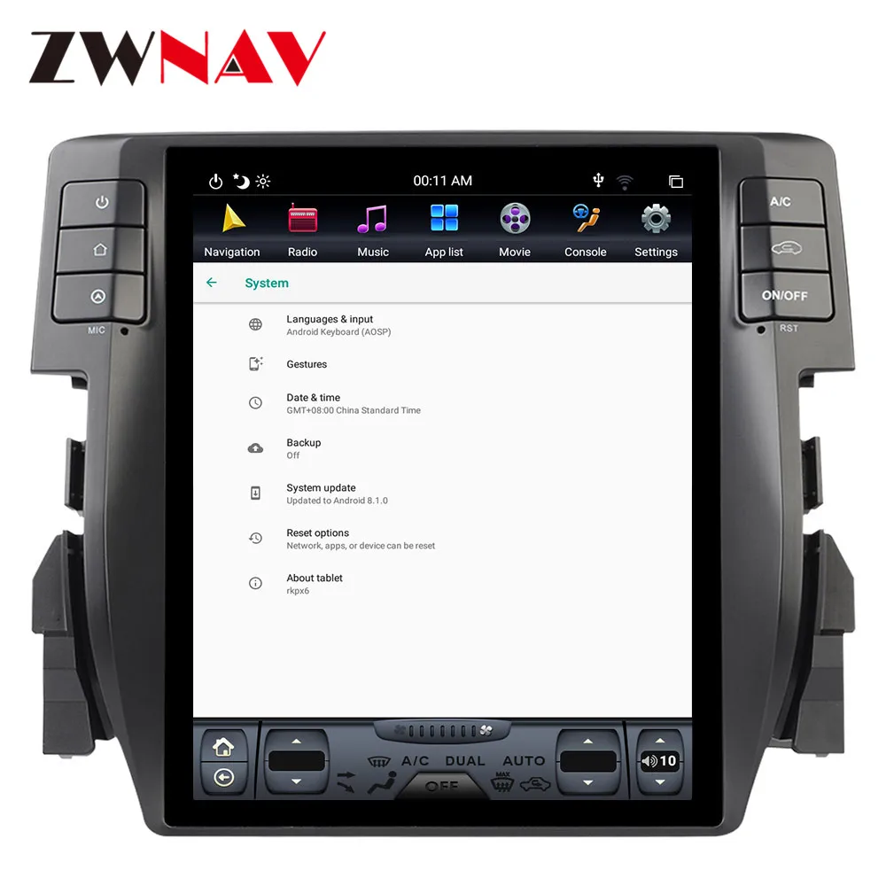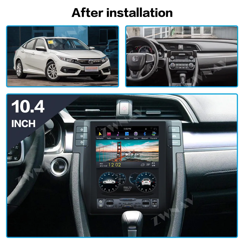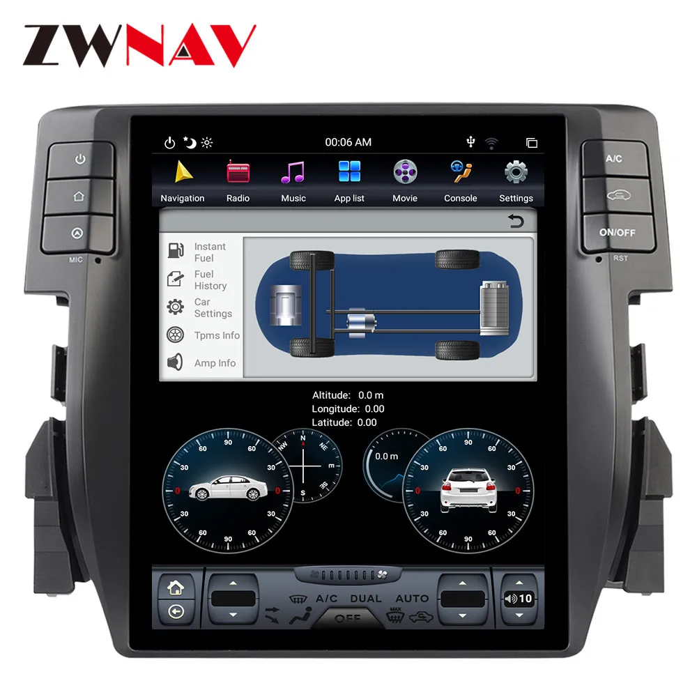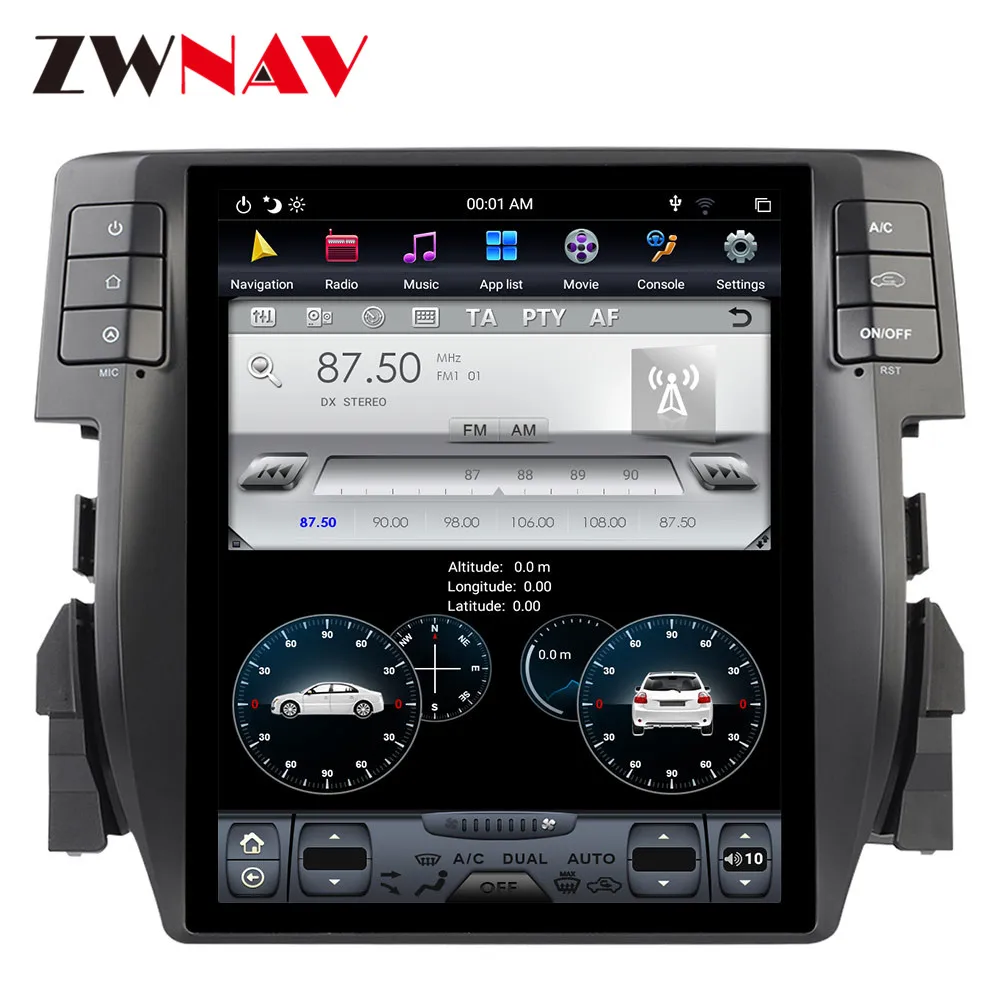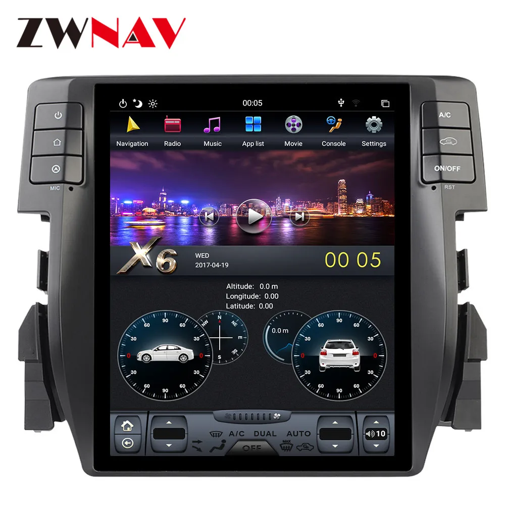 Android 9,0 PX6 4 Гб + 64 ГБ для Honda Civic 2016-2018 автоматический кондиционер Carplay GPS Tesla стиль экранная навигация