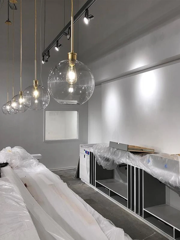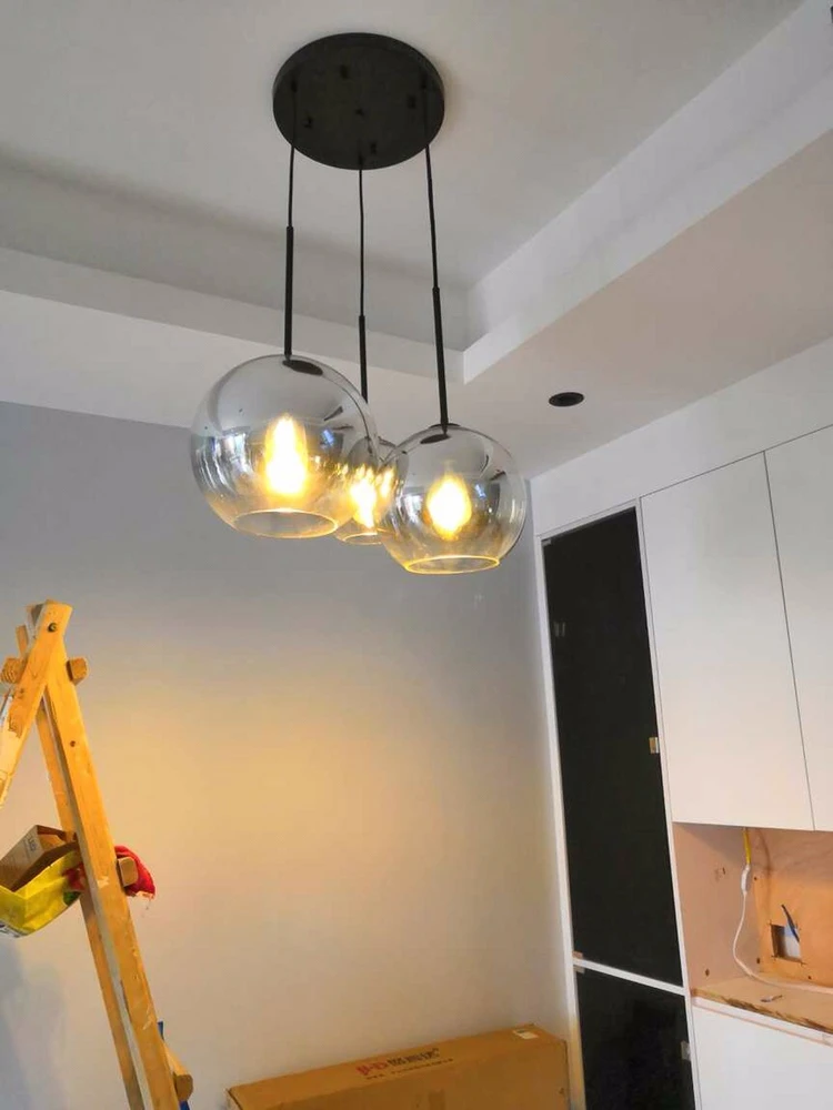 LuKLoy Современная Подвесная лампа лофта, подвеска у кровати, светильник для гостиной, спальни, длинный круглый шар, светодиодный светильник со стеклянным шарикомUSD 63,27Долларов США/шт
