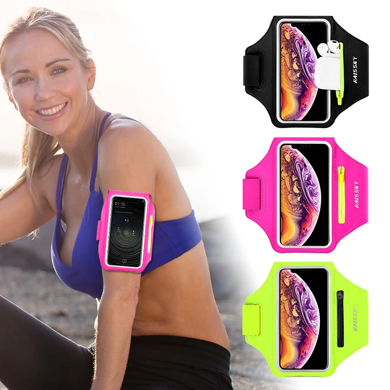 HAISSKY карман на молнии спортивные повязки для бега чехол для Airpods 2 ремень Poch на руку для iPhone X XR XS 6 6 S 7 8 11 Pro