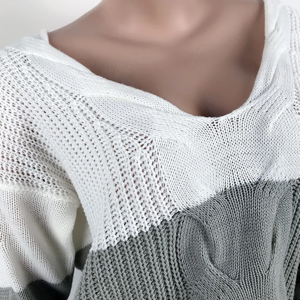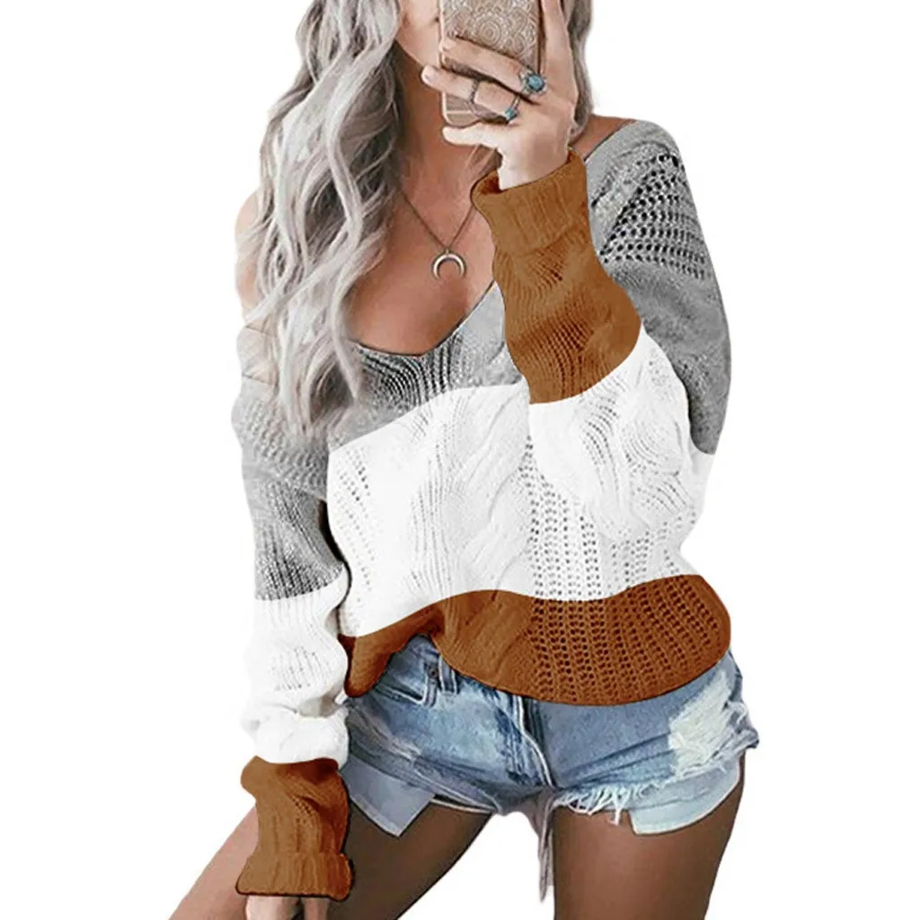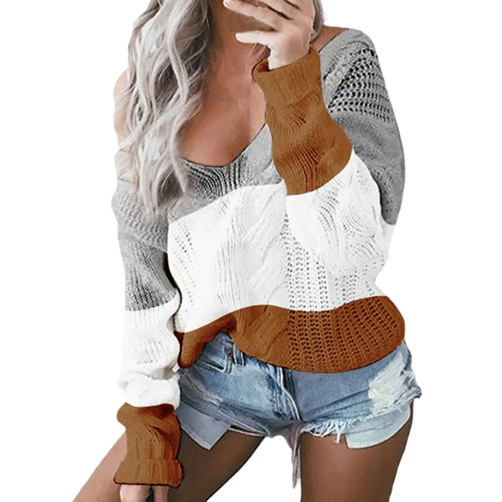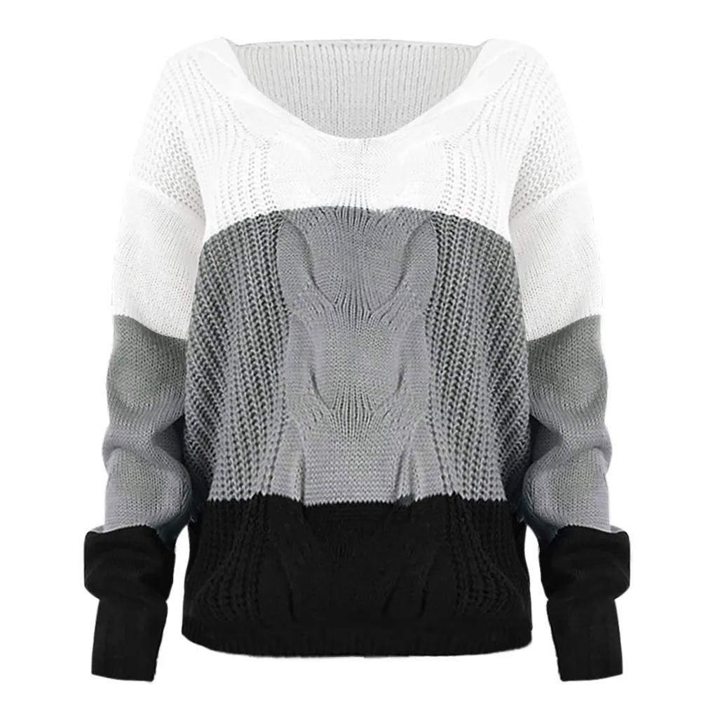 Женский Повседневный пуловер с v-образным вырезом и длинным рукавом из кусков, Свободный вязаный свитер, топы