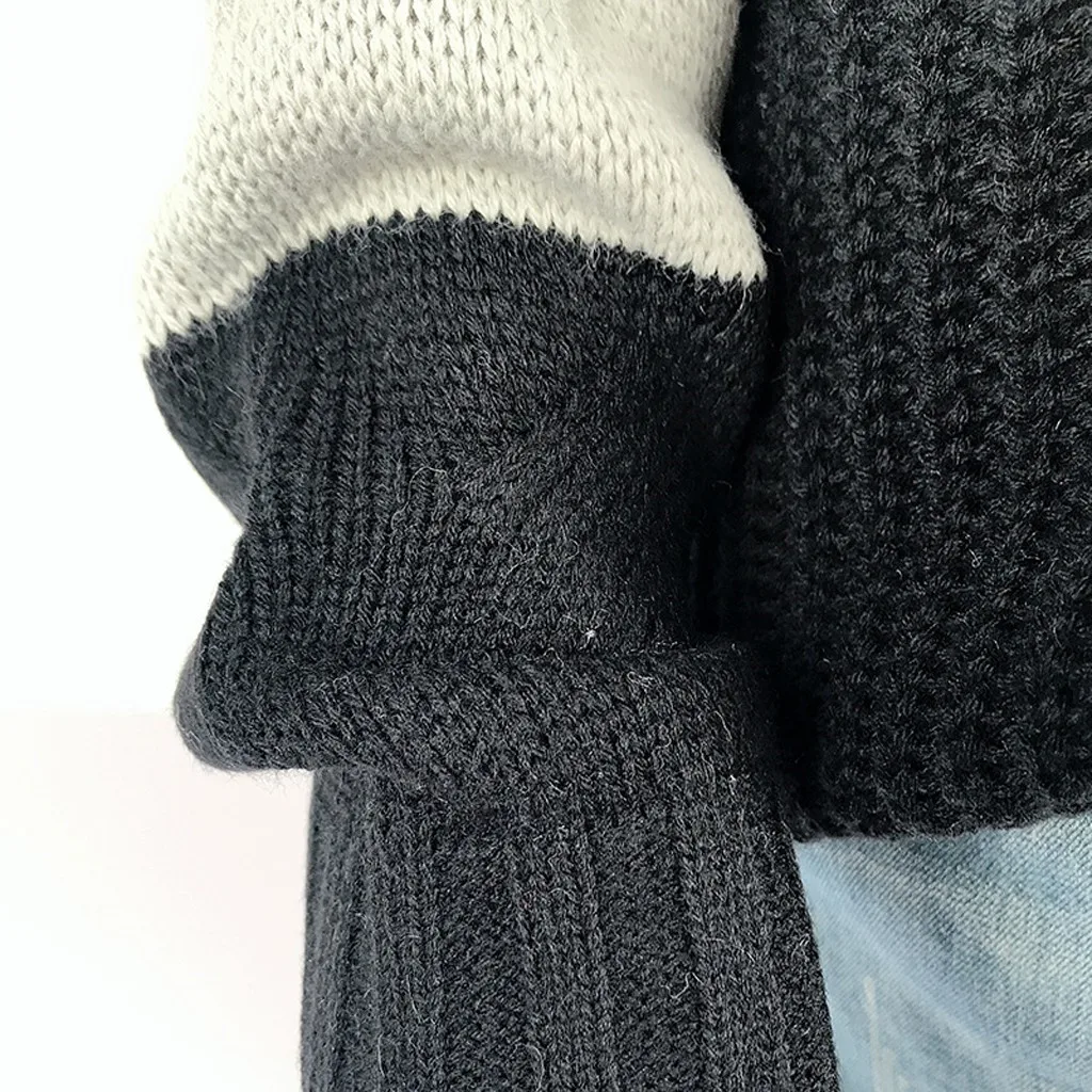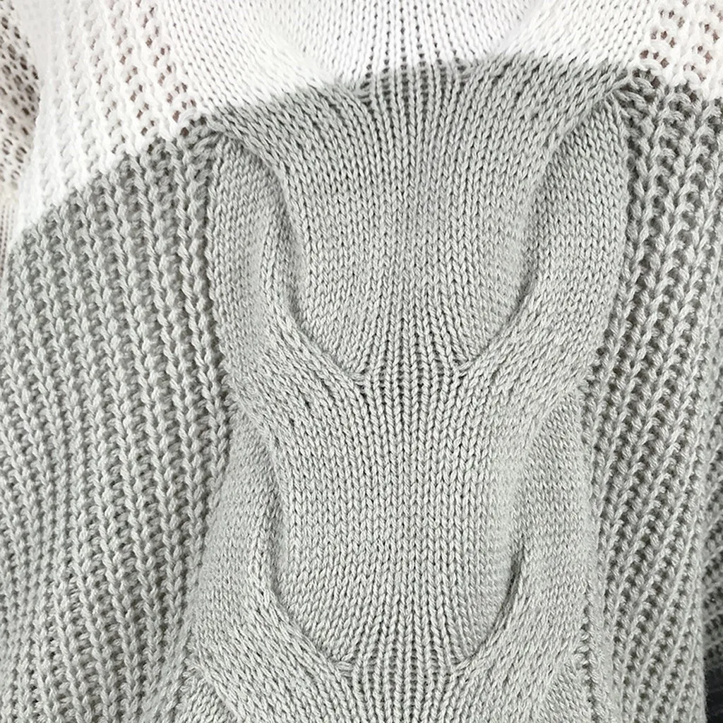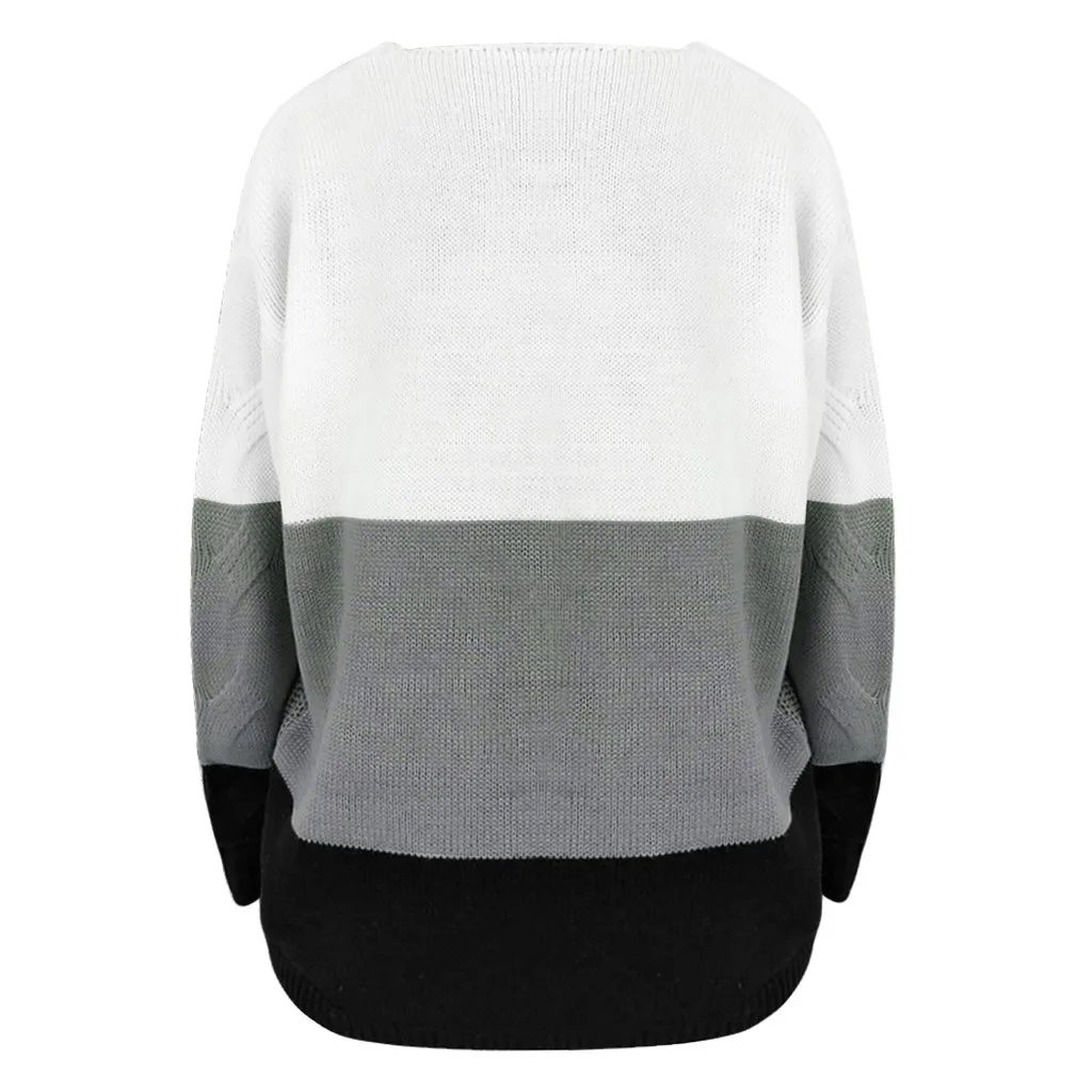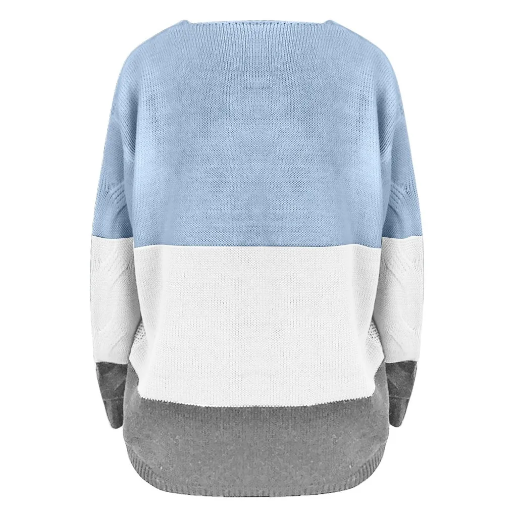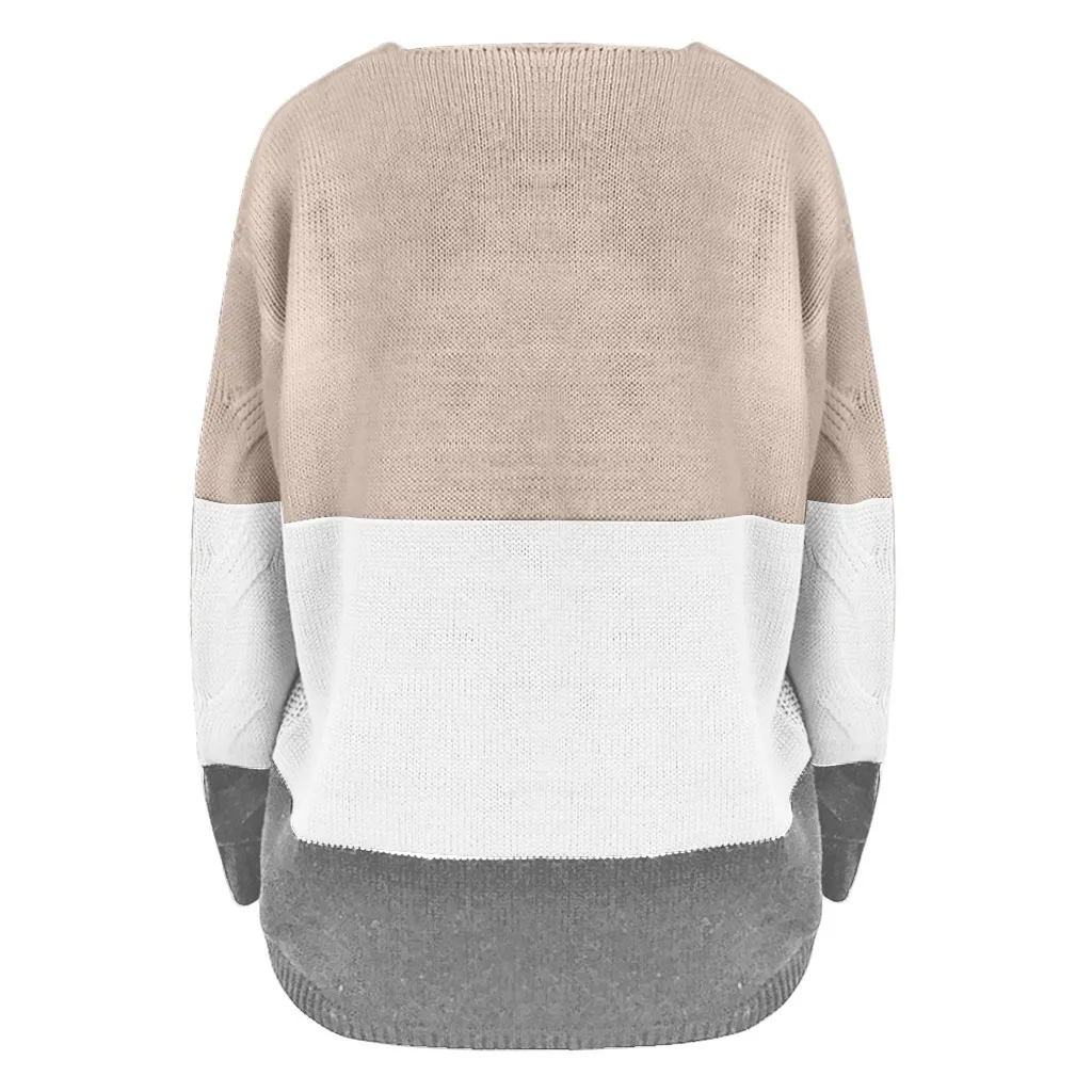 Женский Повседневный пуловер с v-образным вырезом и длинным рукавом из кусков, Свободный вязаный свитер, топы