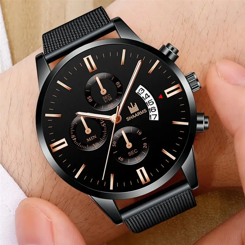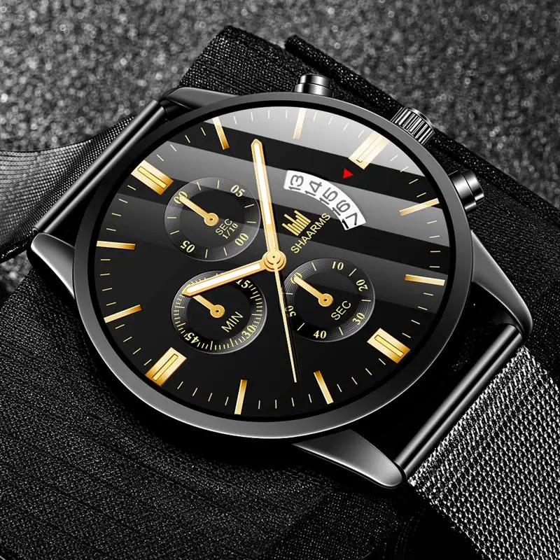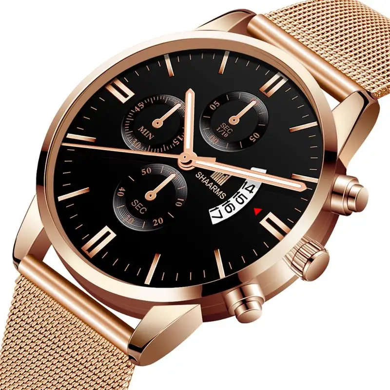 SHAARMS мужские модные часы ультра тонкий сетчатый ремешок Календарь кварцевые наручные часы Роскошные деловые мужские повседневные спортивные часы Прямая поставка
