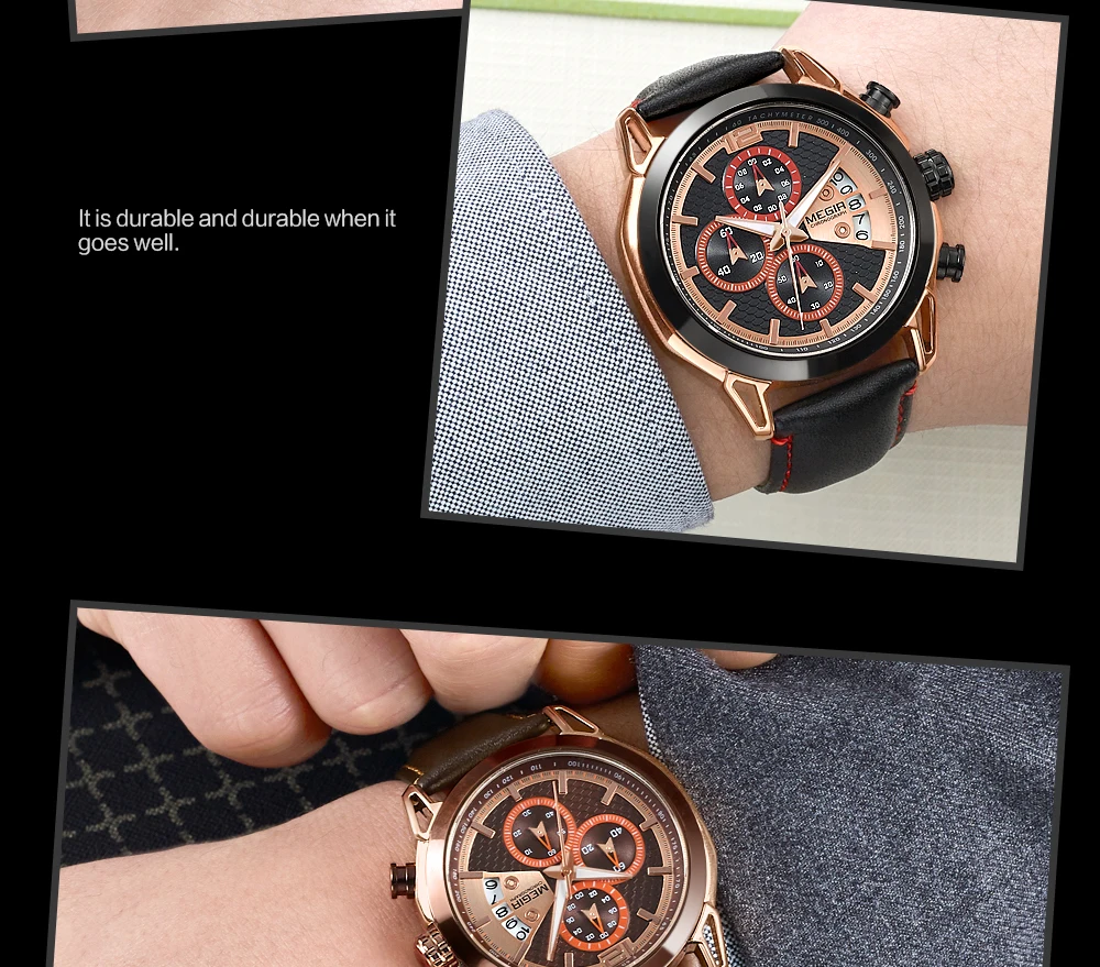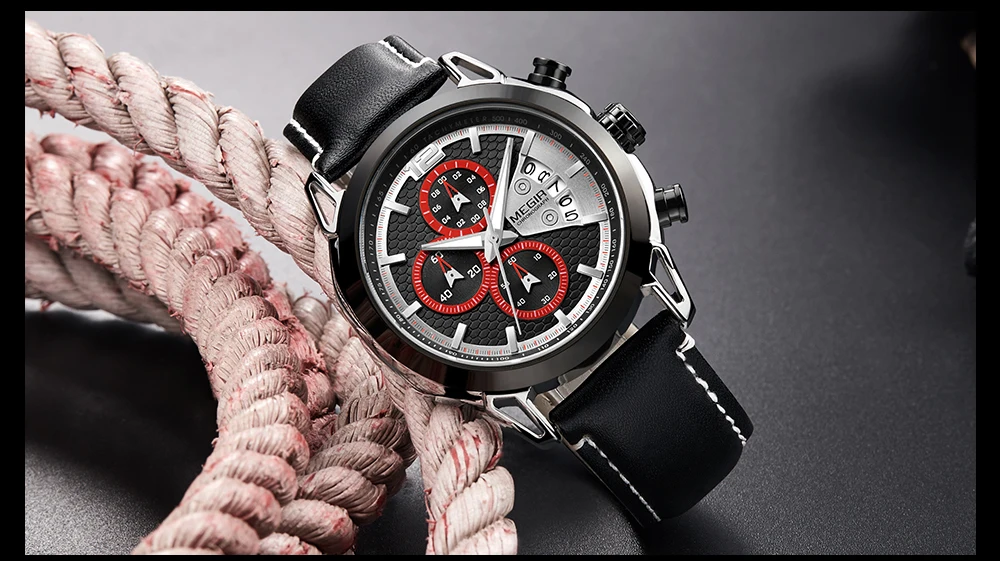 Спортивные часы Crrju мужские Модные Часы с хронографом синие военные кожаным