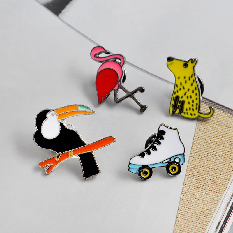 Животное дятел, обувь для катания на коньках, брошь «Фламинго», леопардовая булавка, броши, оптовая продажа, булавки для воротника, ювелирные изделия для мужчин и женщин, подарки