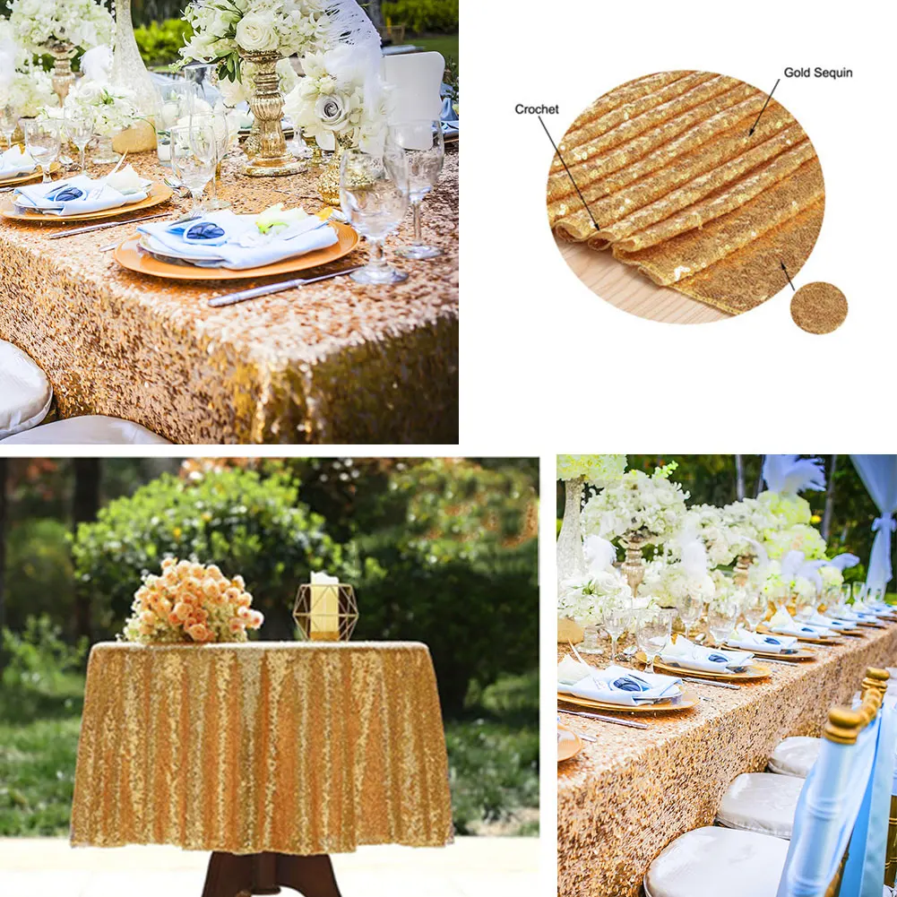 Прямоугольная скатерть с блестками для свадебной вечеринки Рождественская скатерть украшение блестящая круглая вышитая скатерти с пайетками ткань розовое золото