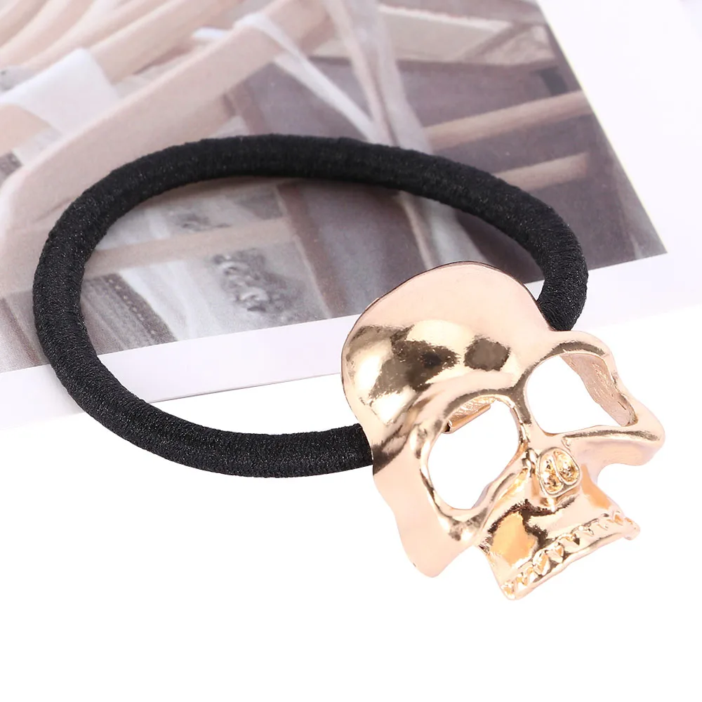 Цвет: черный, золотой, старинное серебро, античная бронза Вес: около 10 г Размеры: Диаметр: 4 см с принтом «череп» Размеры: 3x2,6 см Материал: сплав, эластичный Посылка включает в себя: 1 повязка для волос