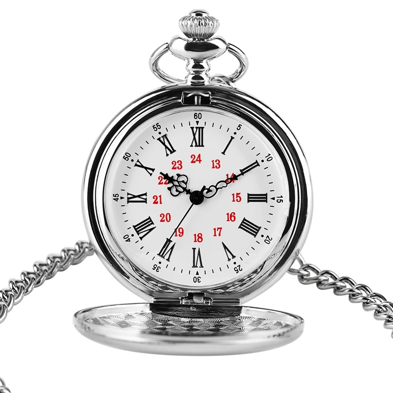Изысканный внешний вид: эти карманные часы имеют серебристый чехол и белый циферблат, который выглядит модно и стильно.