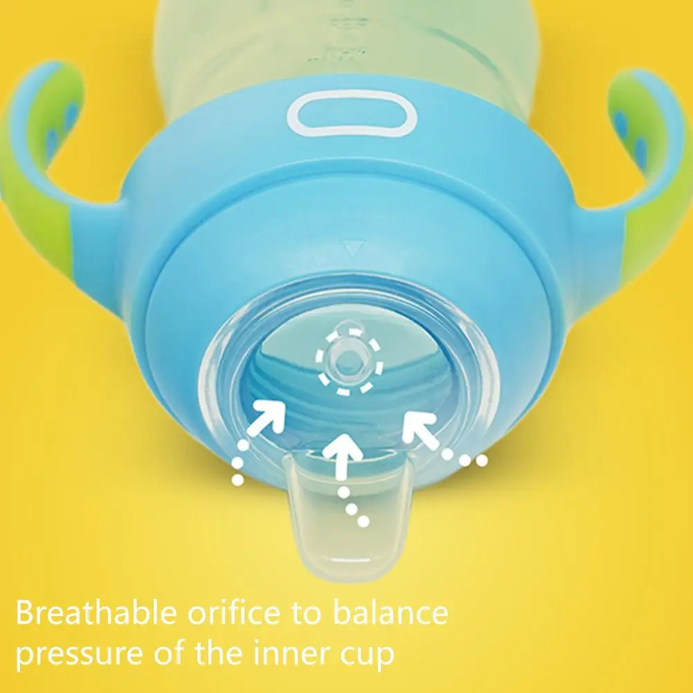 4. Идеальный дизайн: широкое узкое место легко заправлять воду, легко чистить и удобнее. Двойные ручки для ушей дают ребенку лучшее сцепление. Чашка для учащихся дышащая с небольшим ртом, поэтому маленький рот может сбалансировать давление внутри чашки.