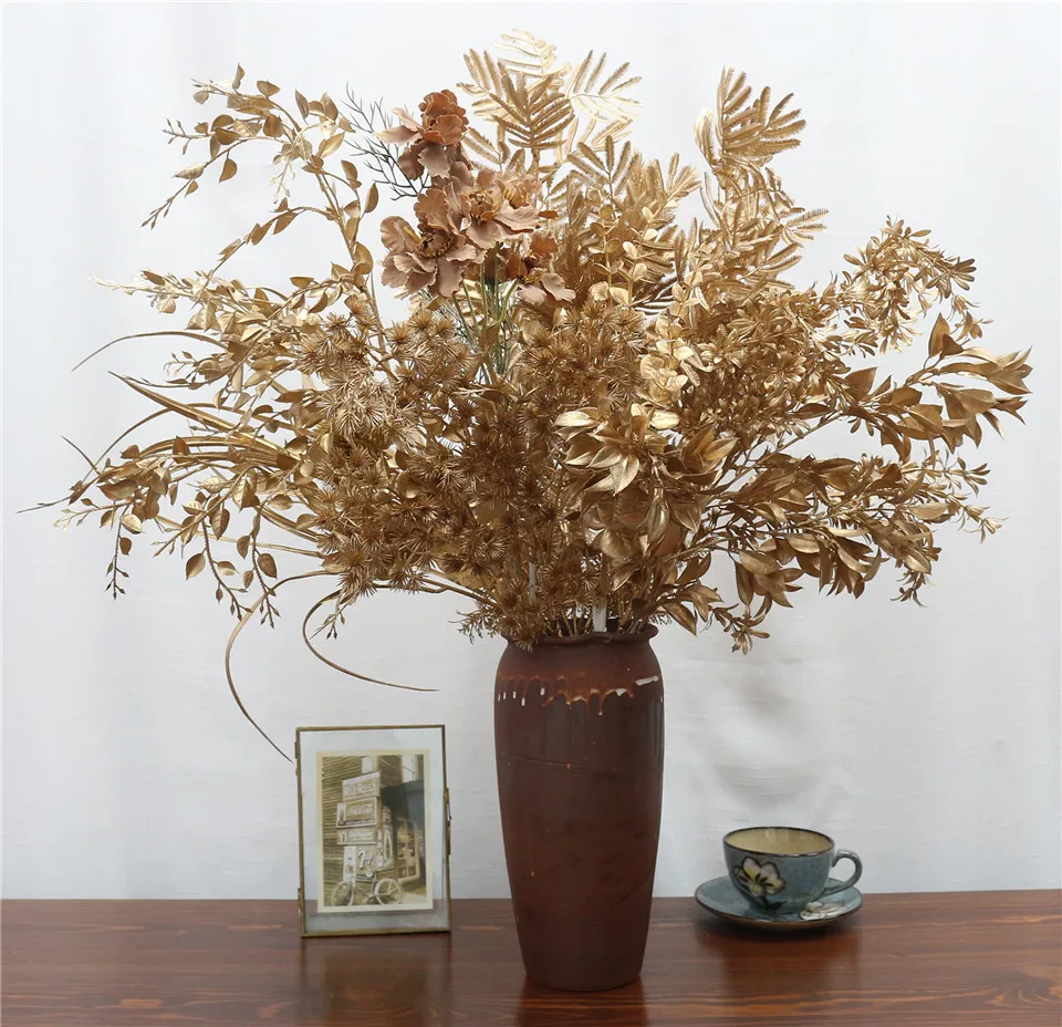 Золотая серия свадебное украшение искусственные цветы пластиковые шелковые