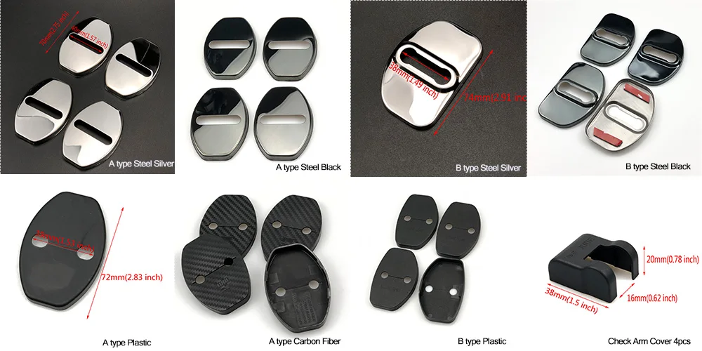 Характеристики:Применимо:Подходит для Volkswagen всех моделейПодходит для Audi всех моделейПодходит для Skoda всех большинства моделейПодходит для Porsche Cayenne 2008-2019/для Macan 2014-2019/для Cayman 2009-2016/ДЛЯ Boxster 2004-2015/для 911 2010-2018Подходит для Seat LEON / Ibizsa Alhambra 2013Подходит для Dacia Sandero StepwayДля Lada VestaПодходит для Smart Fortwo 2009-2014Подходит для Chery Tiggo 2016-2019 ARRIZO 5Подходит для Geely Envision S1 X1 2017-2018Для Geely Emgrand 7 EC7 EC715 EC718 Emgrand7 E7 EC7-RV EC8 GT GC9 BoruiПожалуйста, проверьте форму вашей пряжки замка автомобиля перед покупкой!Пожалуйста, отметьте, какой выбор товара зависит от года вашего автомобиля(Как мы знаем, версии автомобилей будут иметь некоторые различия в разных странах.Пожалуйста, убедитесь, что ваш Автомобильный Дверной замок и проверьте форму руки, как показано на нашей фотографии перед покупкой, спасибо)Информация о продукте:Материал: высококачественная нержавеющая сталь/прочный АБС-пластик, не дешевый!Состояние: высокое качество и 100% новый (никогда не был использован или установлен)(Третьи вечерние товары, не Оригинальные. Место происхождения: Гуандун, Китай (материк)Заводская оптовая цена, хорошее качество гарантии (качество проверено перед отправкой)Цвет: 2 типа на выбор!1. Прочный АБС-пластик (черный)2. Нержавеющая сталь (зеркальное глянцевое серебро) без логотипаТовар по умолчанию без логотипаЕсли вы хотите купить его с логотипом, пожалуйста, свяжитесь с нами!Если вы хотите больше цветов черный, синий, пожалуйста, свяжитесь с нами!Размер: по индивидуальному заказуРазмер (прибл.) : Как показано на картинкеПожалуйста, подтвердите, что размер продукта может соответствовать вашему автомобильному замку двери перед покупкой.(Если вы не можете подтвердить совместимость, пожалуйста, прикрепите фотографию замка двери,Мы поможем Вам дважды проверить его, большое спасибо за вашу помощь!)Если вы хотите узнать больше о нашем продукте, пожалуйста, свяжитесь с нами! Спасибо.Особенности:1. Применение: украшение и защита дверного замка автомобиля, предотвращение коррозии .. делает ваш автомобиль более красивым.2. Эти защитные устройства защитят ваш автомобиль от царапин, сколов и царапин.3. Они легко устанавливаются DIY.4. Редкие детали для украшения и сохраняет ваш автомобиль уникальным и привлекательным5. Изготовлен из высококачественного материала, антикоррозийный, устойчивый к коррозии, прочный6. Простая установка, нет необходимости Сверления или сварки7. Идеально подходит для Авто DIY, идеальная замена или украшение.8. Хорошее качество и были экспортированы по всему миру. Сделано на ISO9001 заводе, хорошее качество и были экспортированы по всему миру9. Защитите ваш Автомобильный Замок и Стопорную (разрядную) пряжку от ржавчины. Водонепроницаемость и устойчивость. Сделайте ваш автомобиль чистым и безопасным.10. Простая установка, добавьте защиту к вашему автомобилю в течение минуты, не нужно снимать какие-либо детали и любой винт.11. Термопластик, литой под давлением, обеспечивает превосходную прочность и долговечность.12. Уменьшает шум и вибрацию при закрытии двери.Содержимое упаковки включает: 4 шт./лотТолько вышеуказанная посылка, другие товары не включены.(Примечание: этот товар поставляется без розничной коробки, но мы упакуем его перед отправкой.)Способ установки:Место установки: дверной замок автомобиля,Если контрольный рычаг двери ржавый, рекомендуется сначала распылить антик
