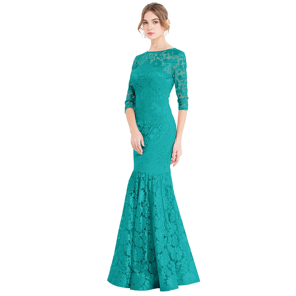 Круглый вырез; Рукав 3/4; Прозрачная кружевная ткань Бюстгальтер и молния сзади, Красивое кружево на ткани Платье для свадебной вечеринки в стиле русалки