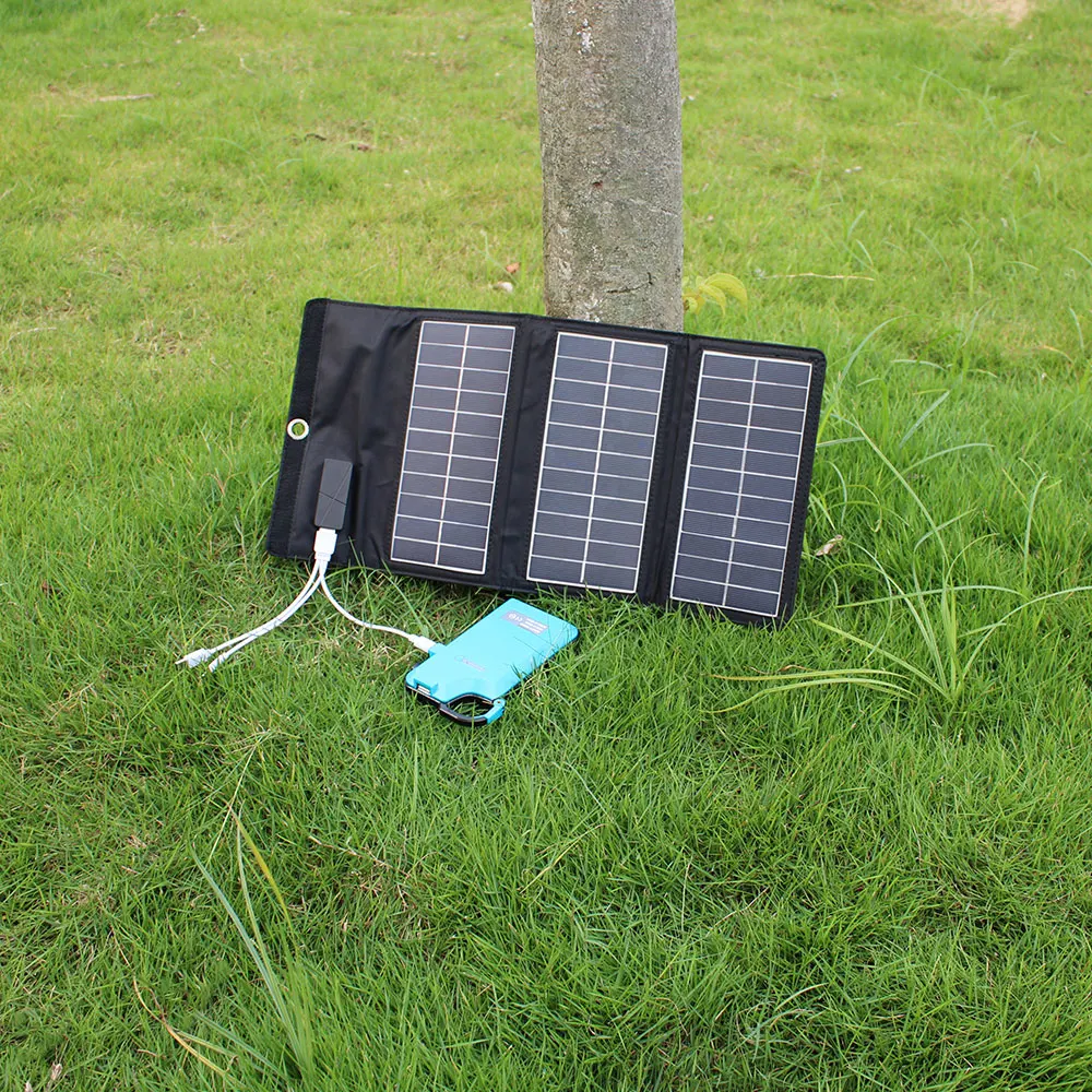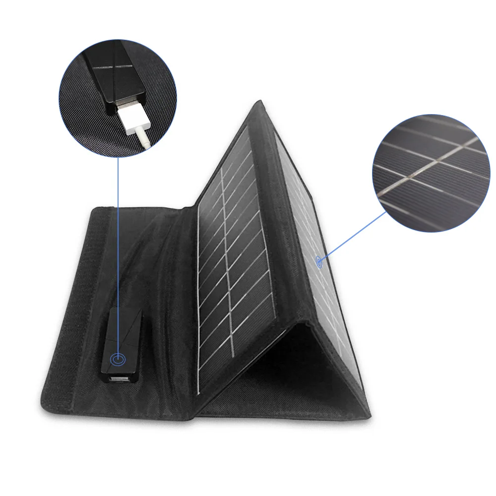 Возобновляемый источник питания в любом месте в любое время Завязаны Упаковочные пакеты батарей в вашем рюкзаке? Скучно с тяжелой внешней батареей, которая нуждается в перезарядке заранее? Просто разверните солнечную панель и имейте спокойствие, наслаждаясь чистой и неограниченной мощностью от прямых солнечных лучей. Быстрая зарядка, интеллектуальная зарядка Интеллектуальный чип внутри автоматически обнаружит максимально быструю зарядку для вашего устройства, а монокристаллическая солнечная панель предложит до 20% высокую эффективность преобразования для достижения высокой скорости зарядки. Дизайн для переноски Размер бумаги после тройного складывания делает его идеальным для активного отдыха, например, пеших прогулок, путешествий и т. д. равномерно Расположите отверстие для глаз и монтажные петли позволяют легко прикрепить к рюкзаку. Кроме того, панели ПЭТ промышленного класса связаны вместе с тяжелым полиэстеровым полотном, оснащая это солнечное зарядное устройство водонепроницаемой функцией.