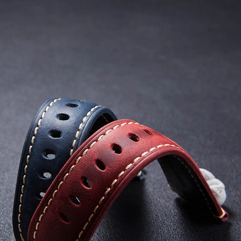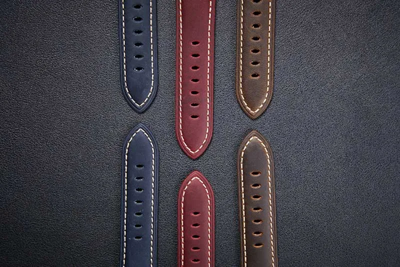 Размер 22 мм/24 мм/26 мм Пряжка Покрытие Черное и стальное серебро Цвета Винный красный коричневый и синий