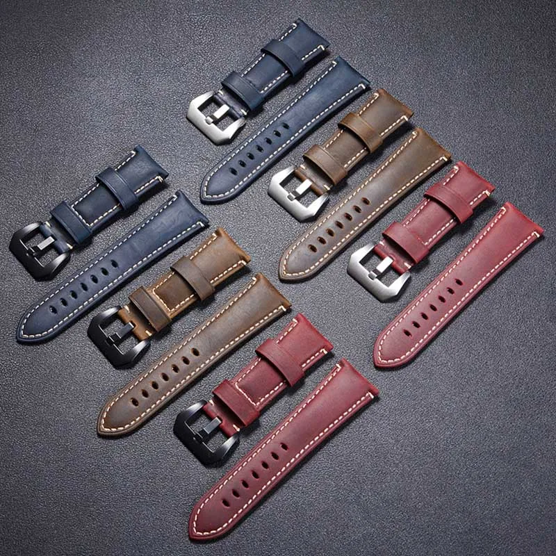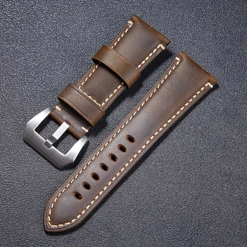 22 мм 24 мм 26 мм кожаный ремешок для мужчин классический коричневый ремешок для часов ручной работы настоящий кожаный браслет полированный контакт пряжка черный, серебристый