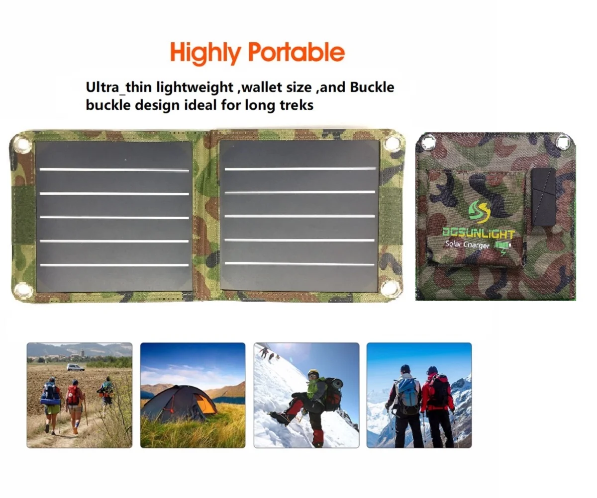 Rg портативный камуфляж/черный цвет 7 Вт Складная солнечная панель зарядное устройство технология (умный ток-обмен IC для каждого usb-порта) для iPhone, ipad, Samsung и других цифровых устройств