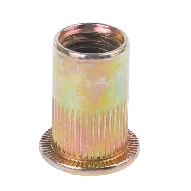 Описание товара: Эта стальная заклепка покрыта желтым цинком для коррозионной стойкости. Ребристый Корпус удерживает гайку на месте, так что он не будет поворачиваться При затягивании винта. Также известный как слепые вставки, они могут быть установлены, когда у вас есть доступ только к одной стороне материала. Установите в просверленное отверстие, используя инструмент для заклепок. Инструмент сгибает гайку, создавая задний фланец, который удерживает гайку к материалу. Комплектация: 175 шт. 6 размеров Метрическая Смешанная оцинкованная углеродная стальная заклепка набор гаек поставляется с пластмассовая коробка: список (тип, резьба * длина, количество): заклепки гайка M3 * 9 мм 45 шт.; заклепки гайка M4 * 11 мм 45 шт.; заклепки гайка M5 * 13 мм 35 шт.; заклепки M6 * 15 мм 20 шт.; заклепки M8 * 18 мм 15 шт.; заклепки M10 * 21 мм 15 шт.; Комплектация: 175 шт Метрическая Смешанная оцинкованная углеродная стальная Заклепка гайка Резьбовая вставная закладная гайка упакована в пластиковую коробку