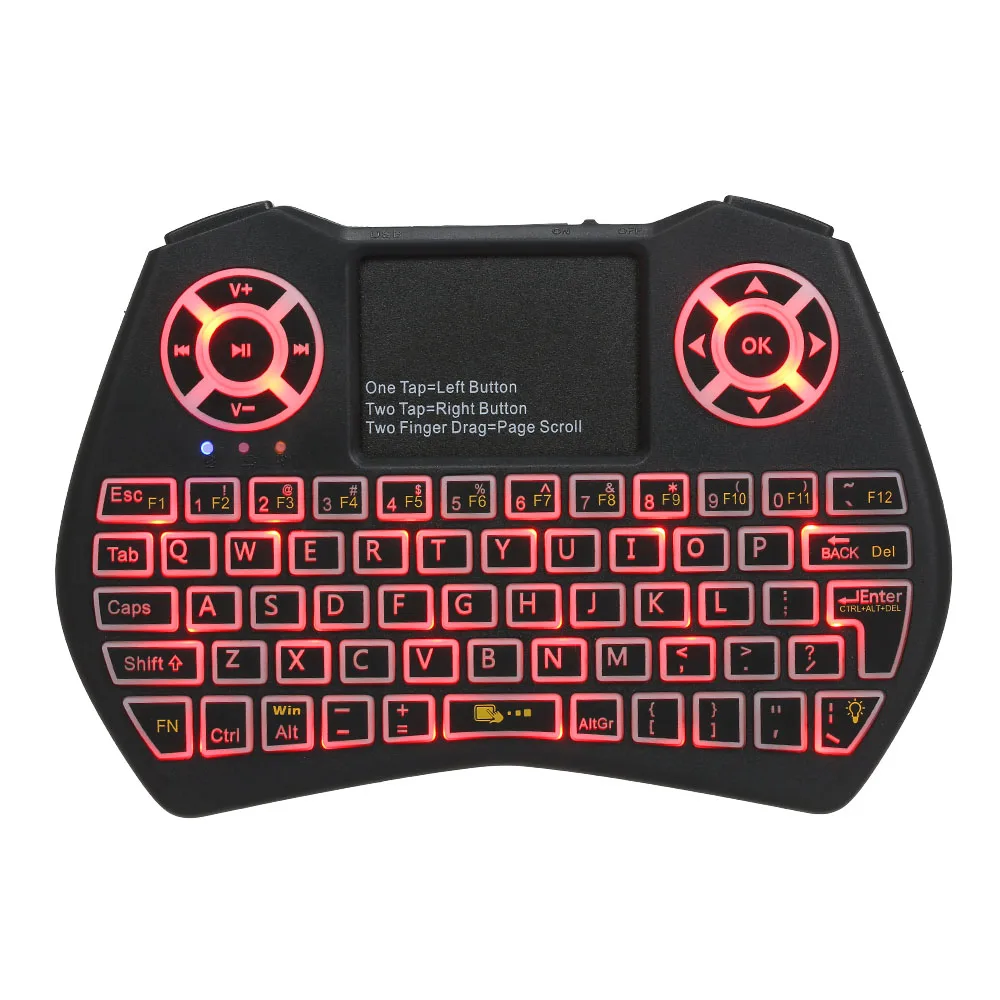 * 3-в-1 Многофункциональный: Беспроводная QWERTY клавиатура, тачпад мышь и светодиодный с подсветкой. Совместимость с ПК, Smart TV, Android TV BOX и т. Д.