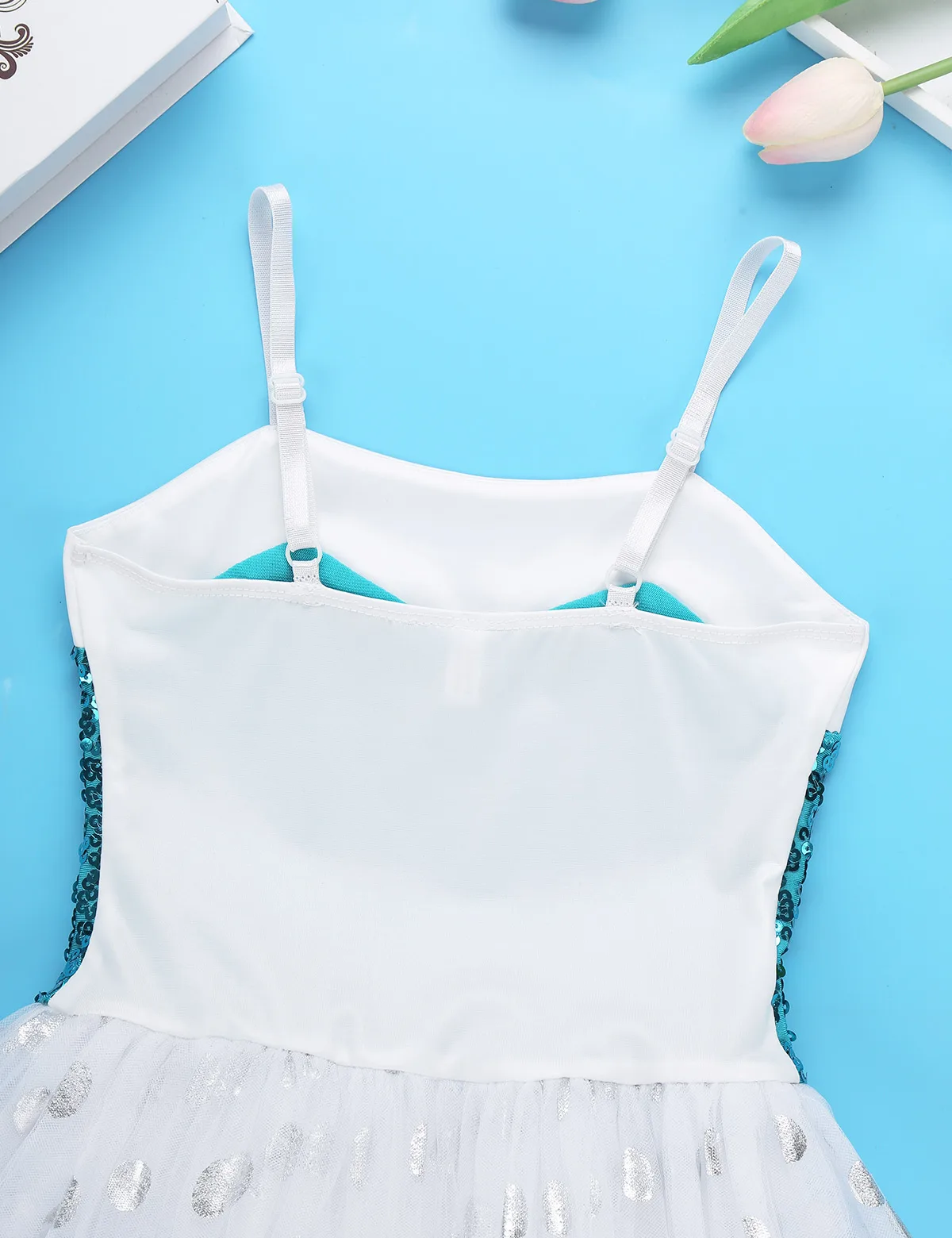 Регулируемые бретельки-спагетти, Лиф украшен блестящими блестками спереди, а подкладка удобна в носке.