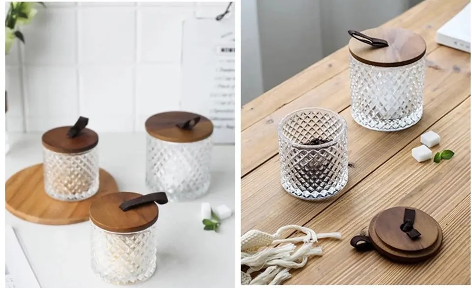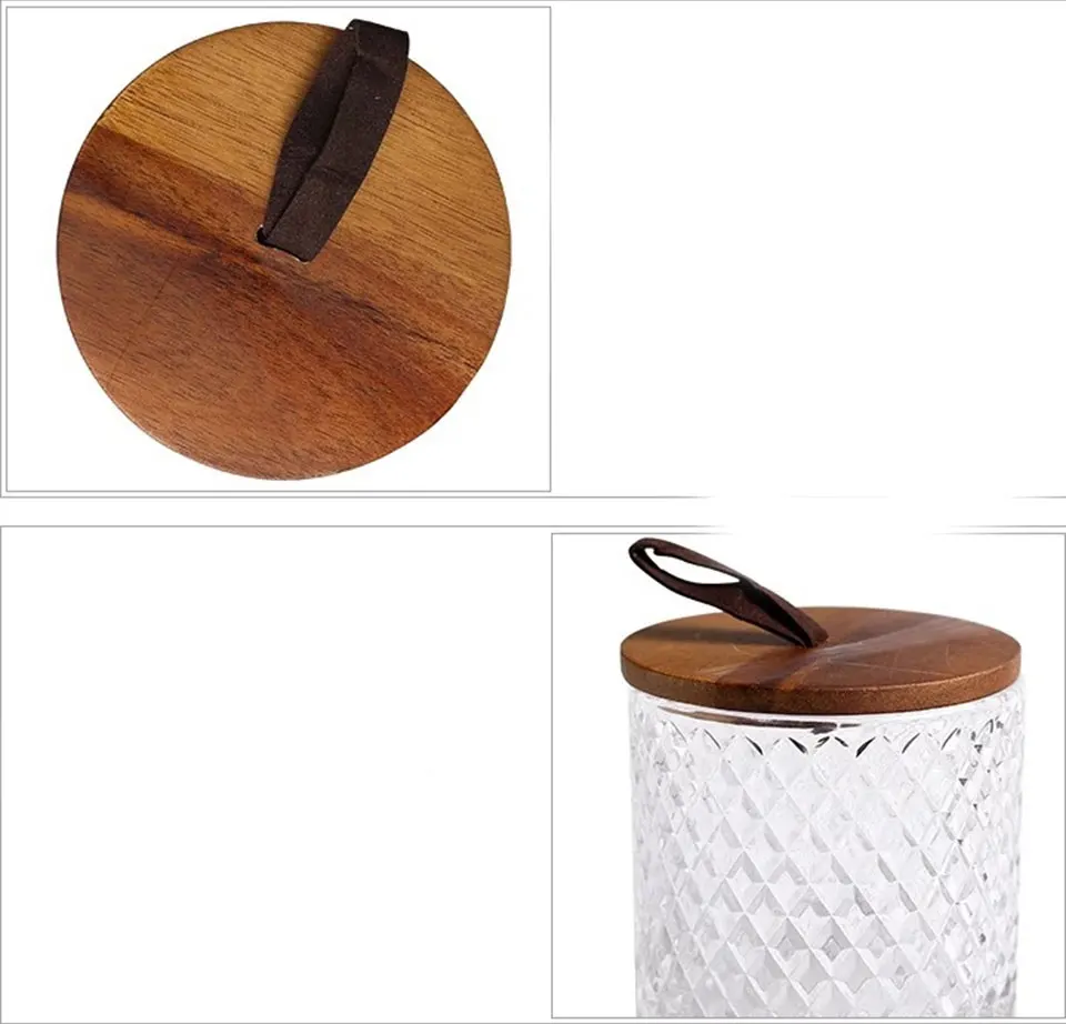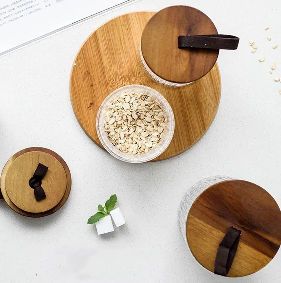 Акация деревянная крышка с кожаной ручкой ремешок, герметичный.