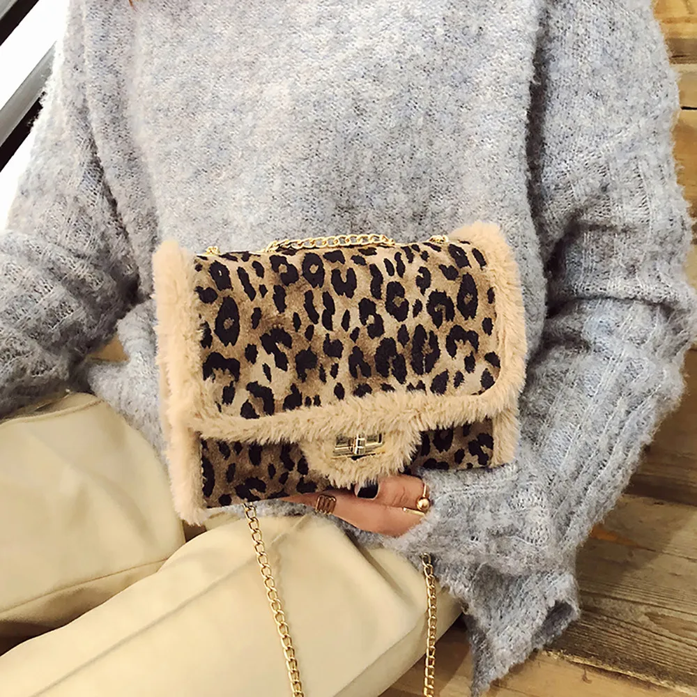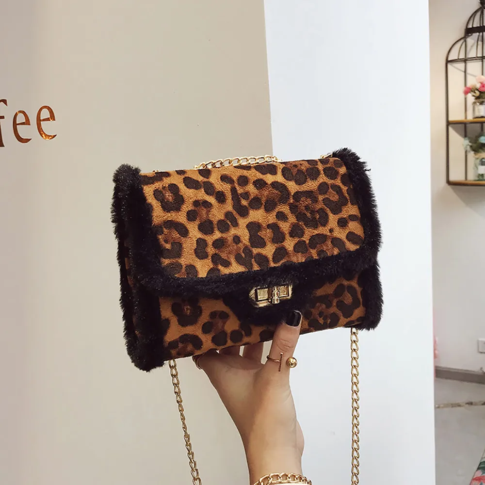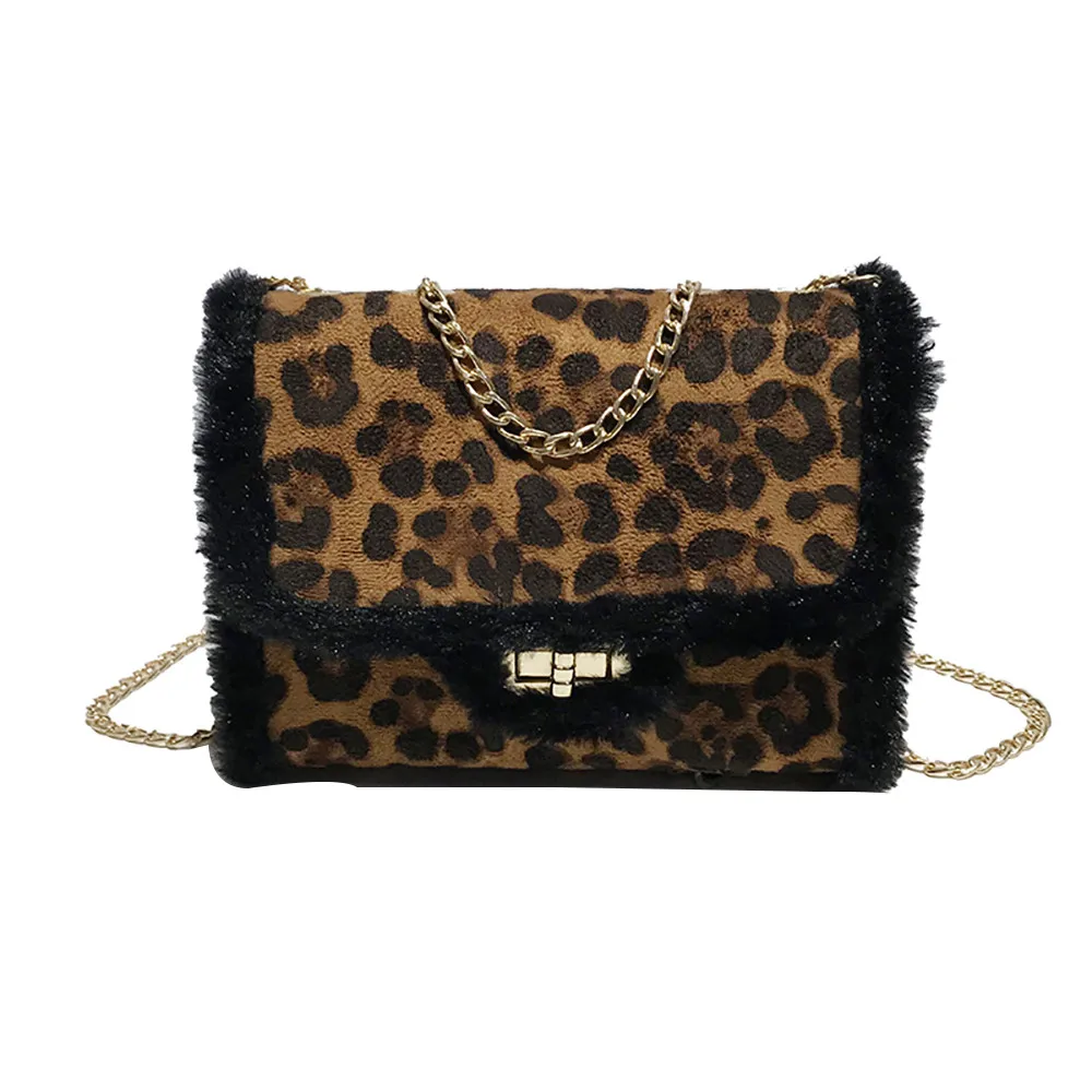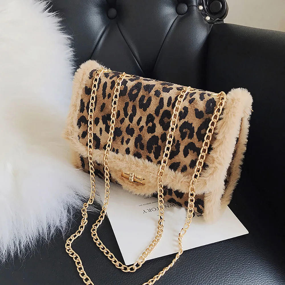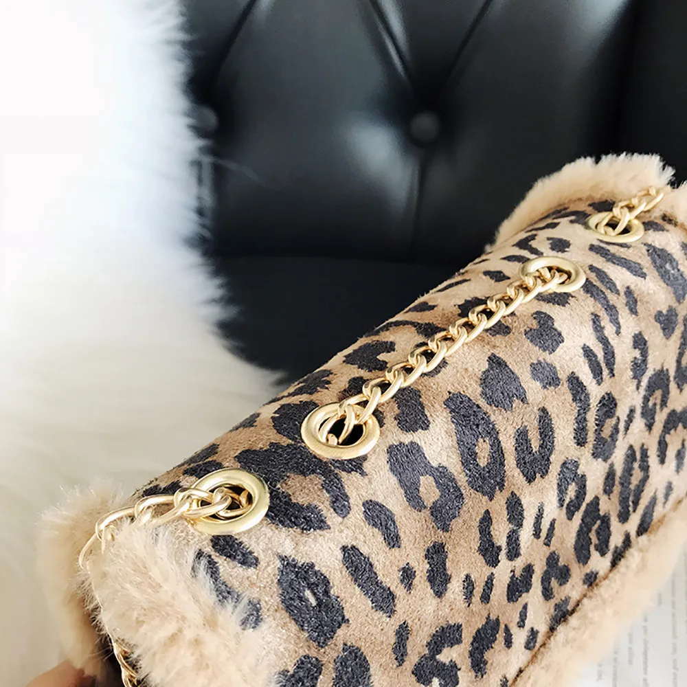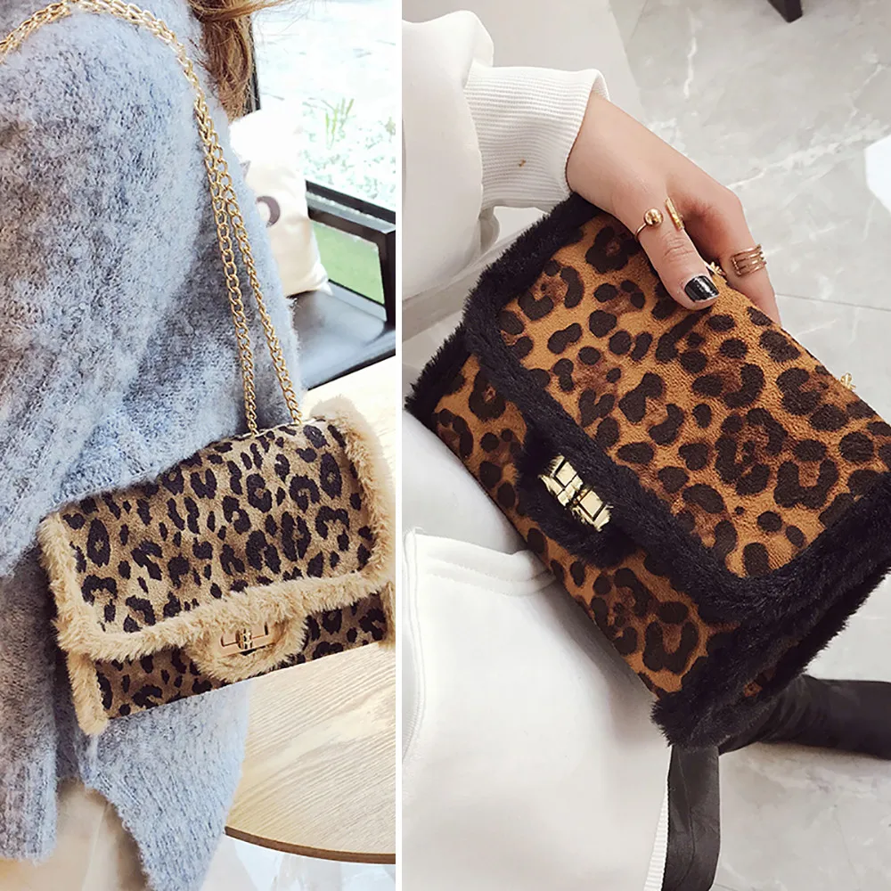 Женская маленькая сумка с леопардовым принтом, Сумка с мехом, сумка через плечо, сумка-мессенджер