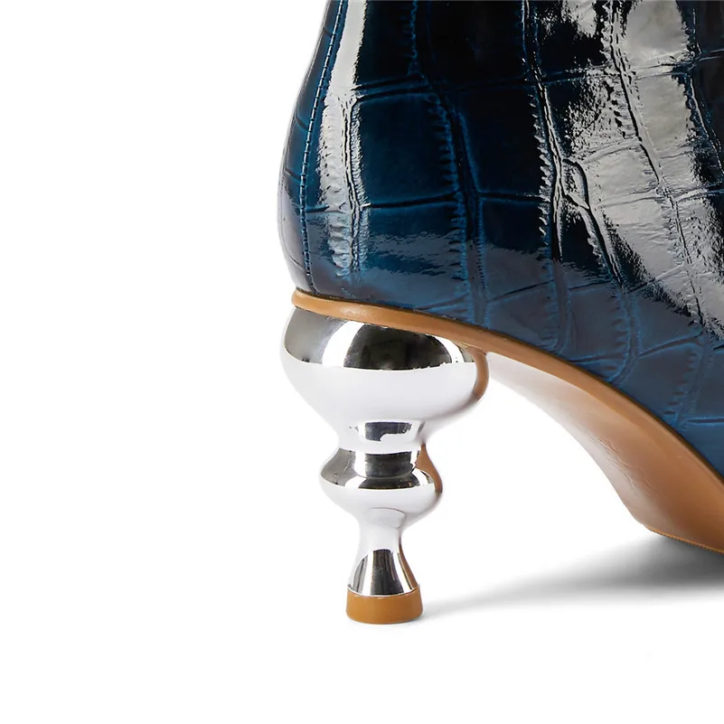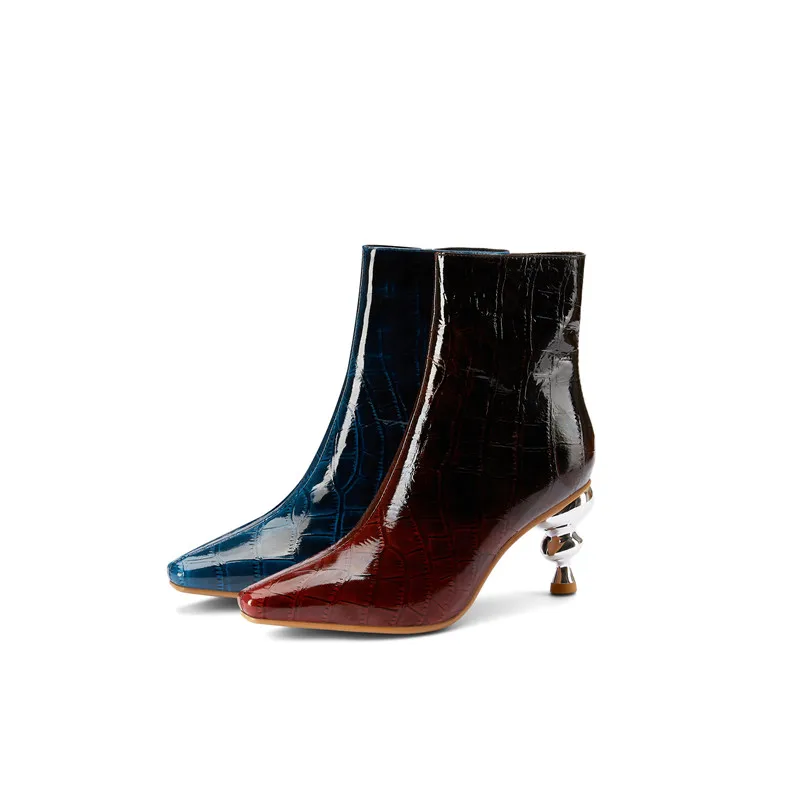 ANNYMOLI/осенние ботильоны; женские полусапожки из натуральной кожи на высоком каблуке в необычном стиле; обувь на молнии с квадратным носком; женская зимняя обувь