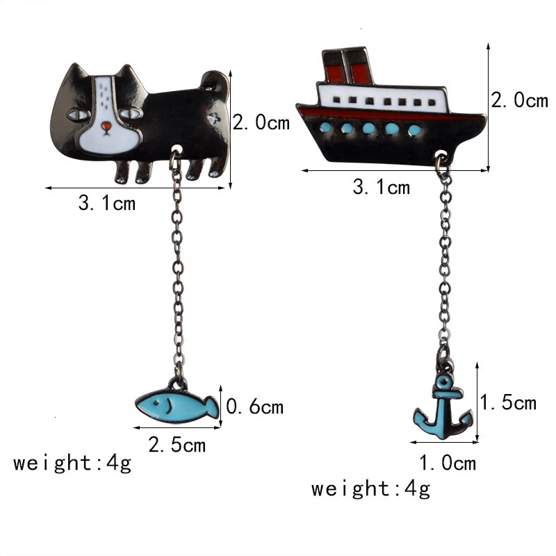 1 шт., изысканные броши в виде кошки, рыбки, якоря, лодки, броши для женщин, мужчин, пальто, шляпа, сумка со значком, отворот, булавки, кнопка, цепь, ювелирные изделия
