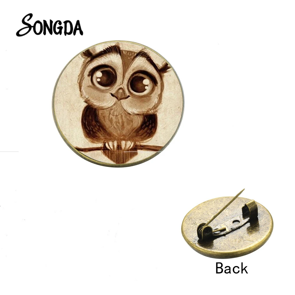 Металлическая брошь в виде совы с большими глазами животные мультяшная птица