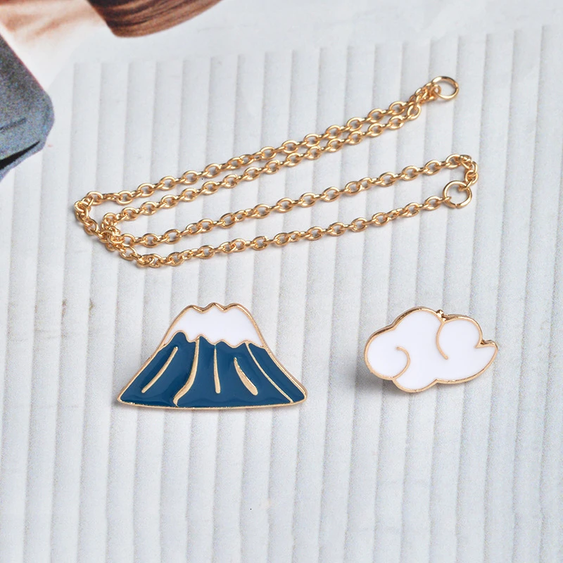 Изящный набор, стильная брошь в виде цепочки, броши в виде Снежной Горы и облака, джинсовая куртка, булавки для мужчин и женщин, подарок на день рождения, бесплатная доставка