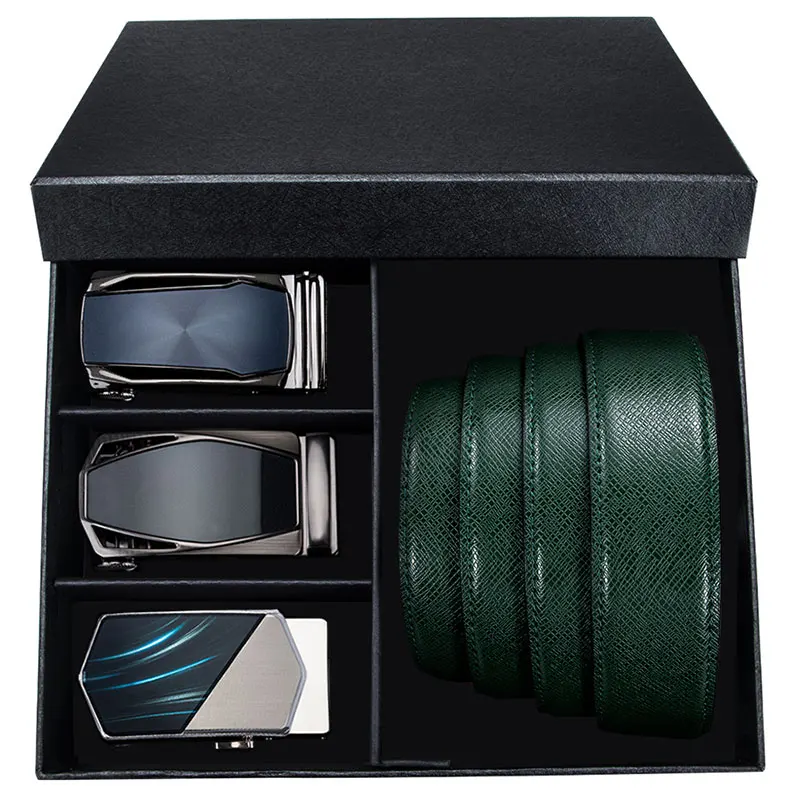 Бренд Hi-Tie 100% пояса из натуральной кожи для мужчин зеленый кожаный оригинальный ремень коробка набор Модельер пряжки ремень на талию