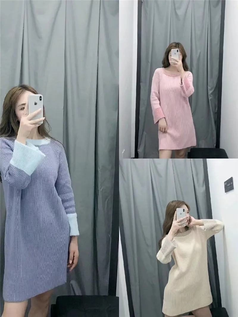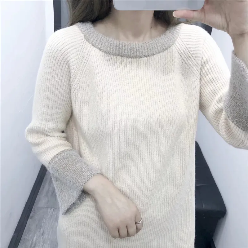 Женский Повседневный Однотонный свитер с длинным рукавом, винтажный мягкий джемпер с круглым вырезом и длинными рукавами, Осень-зима 2019