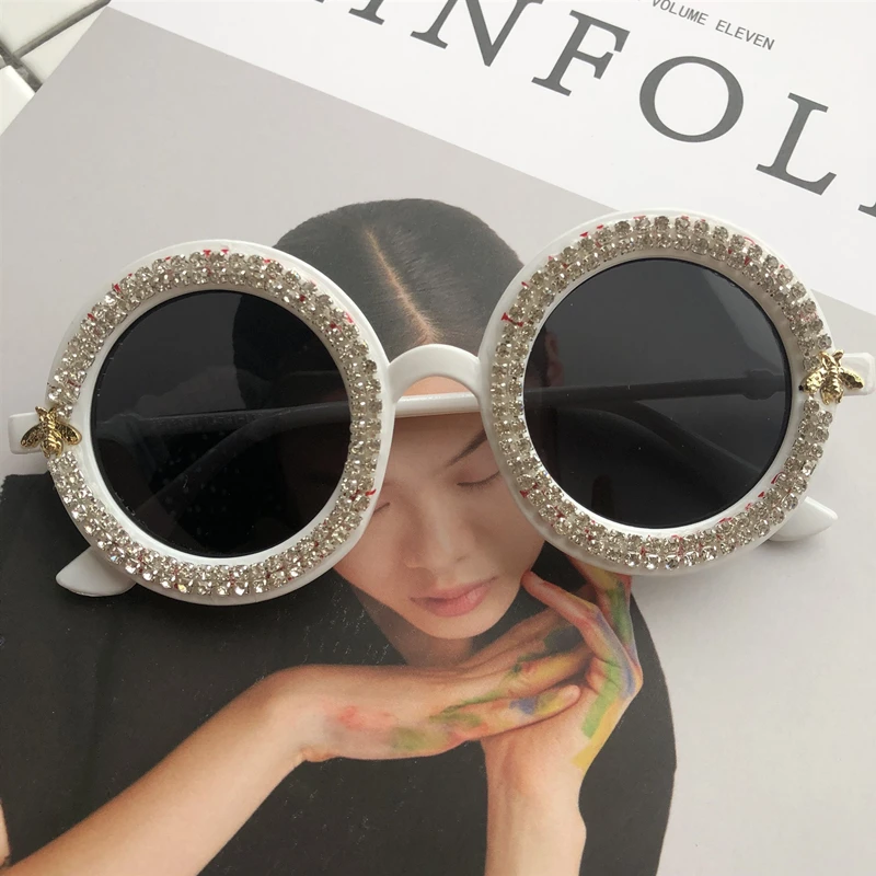 Черные мужские и женские солнцезащитные очки ручной работы со стразами радужные очки с бусинами овальные Оттенки UV400 забавные дизайнерские солнцезащитные очки класса люкс Gafas de