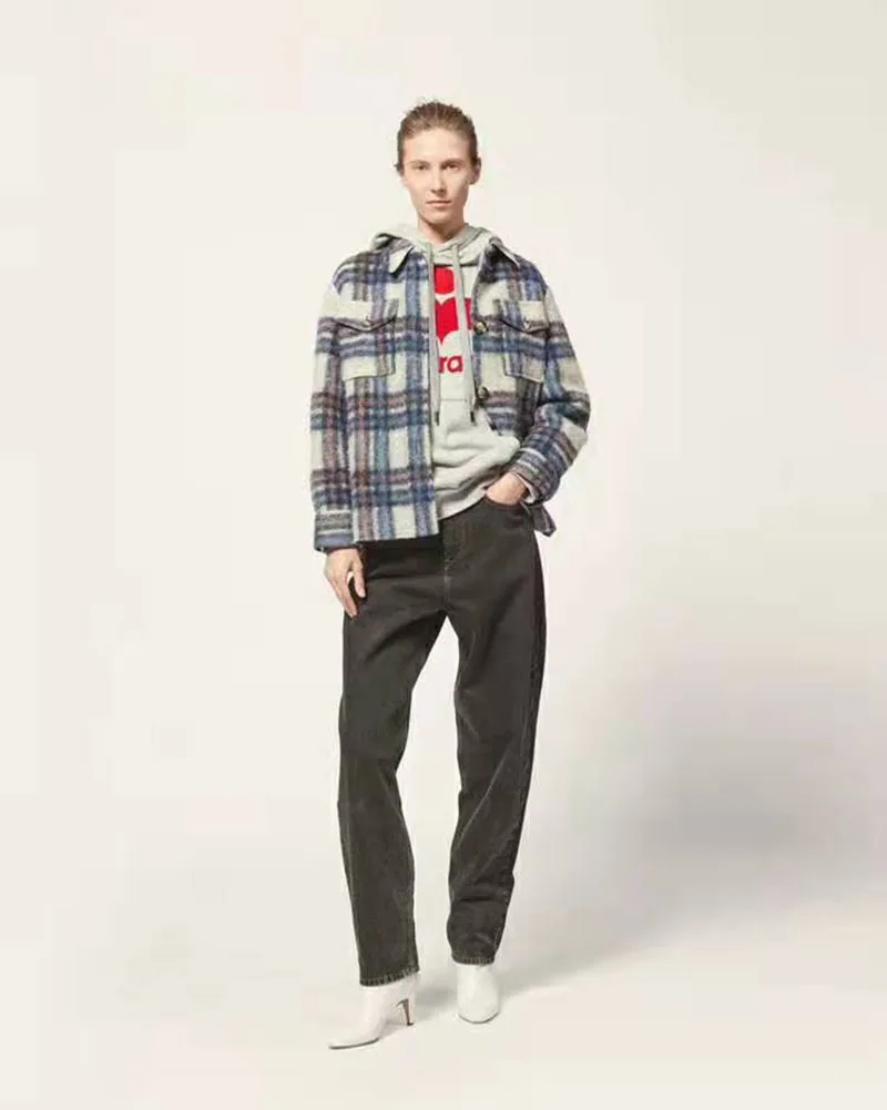 2019 осень и зима новая французская большая клетчатая рубашка с лацканами шерстяная фетровая прямая женская куртка