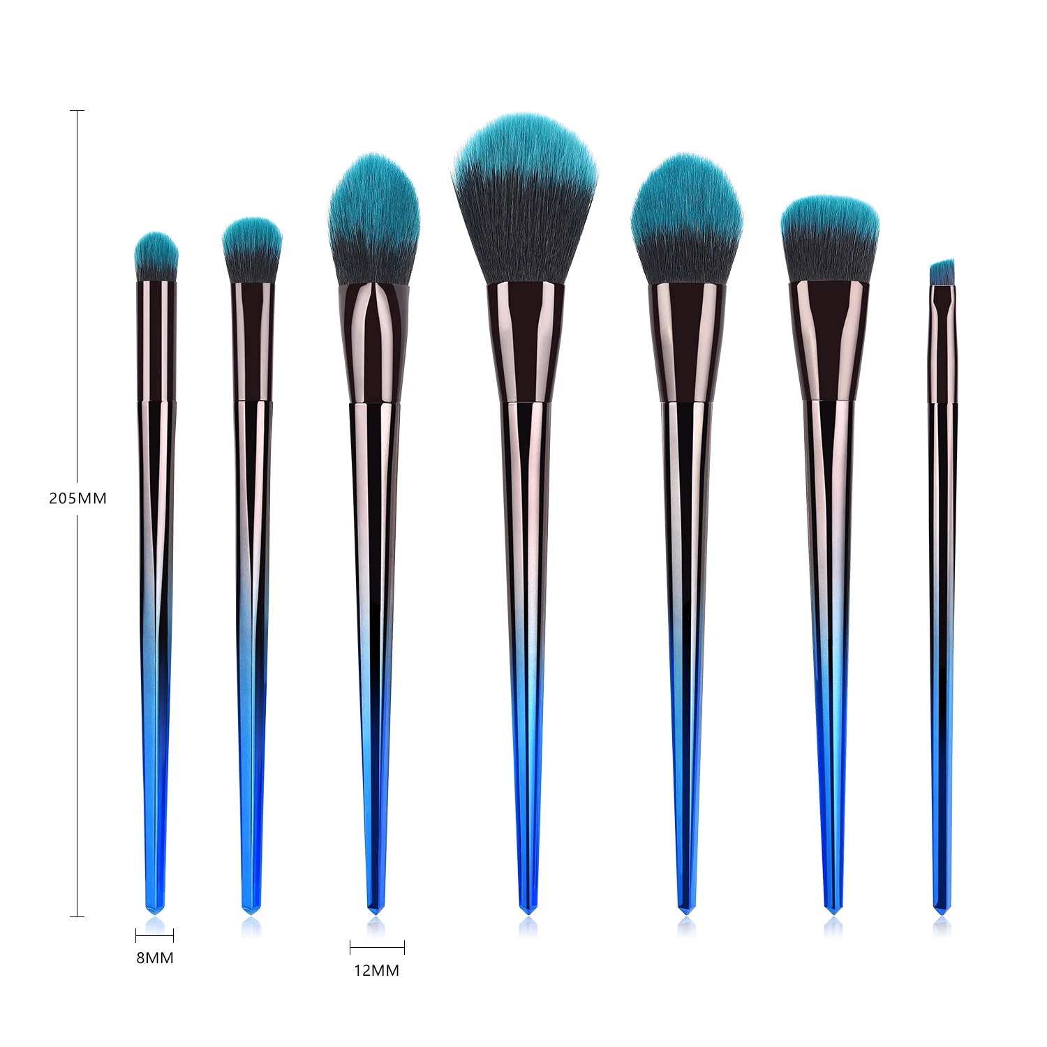 7 шт., синие, черные, градиентные кисти для макияжа с ручкой, набор, основа для макияжа, тени для век, пудра для губ, кисти для лица, косметический инструмент, набор Кабуки