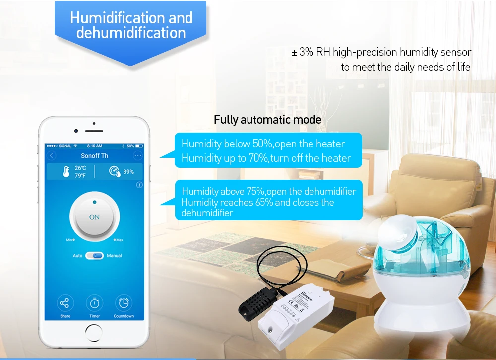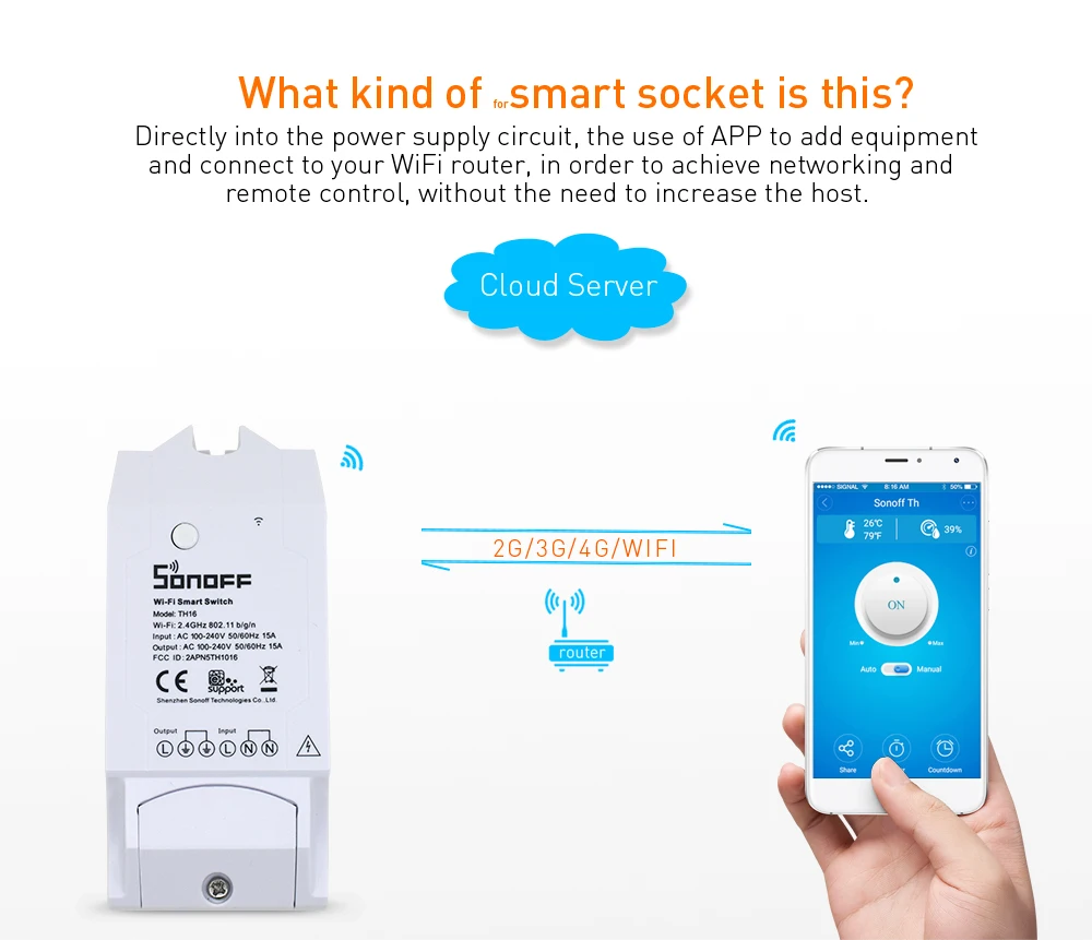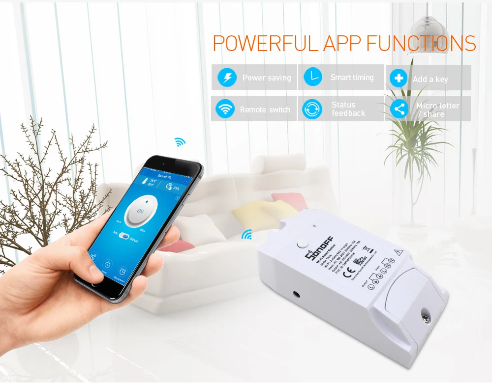 Примечание: датчики не входят в посылка Sonoff TH 16, вы должны купить его отдельно. Датчик Si7021-это датчик температуры и влажности, не водонепроницаемый. Датчик-DS18B20-это датчик температуры, водонепроницаемый. Обзор продукта: Sonoff является универсальным swich для вашей системы умного дома, чтобы удаленно и автоматически включать/выключать любые приборы. Работает с Sonoff SC, вы можете сделать его более умным. Узнайте больше о Sonoff SC здесь. Sonoff TH16-это беспроводной переключатель контроля температуры и влажности, который может удаленно контролировать и устанавливать диапазон температуры и влажности для включения/выключения подключенных устройств через приложение eWeLink iOS/Android. Так же, как указано имя, устройство мониторинга температуры и влажности Sonoff поддерживает 15A. Sonoff TH16 удаленный температурный монитор и беспроводной монитор влажности WiFi переключатель поддерживает предустановку диапазона для температуры или влажности. Когда температура или Влажность окружающей среды попадает в диапазон, он автоматически включится или выключится подключенные устройства. С помощью новейшего приложения eWeLink пользователи могут создать серию простых условных действий (смарт-сцены) для включения/выключения других смарт-устройств. Это означает, что пользователи могут использовать Sonoff TH10 или Sonoff TH16 с сенсором SI7021, DS18B20 или DHT11 для сбора данных о температуре/влажности, которые могут использоваться в качестве условия для включения/выключения других устройств, такие как Sonoff, Sonoff RF, Sonoff SV, S20 smart socket. Это устройство прекрасно работает с электрическим вентилятором, кондиционером, увлажнителем, умным аквариумом, системой полива и т. д.