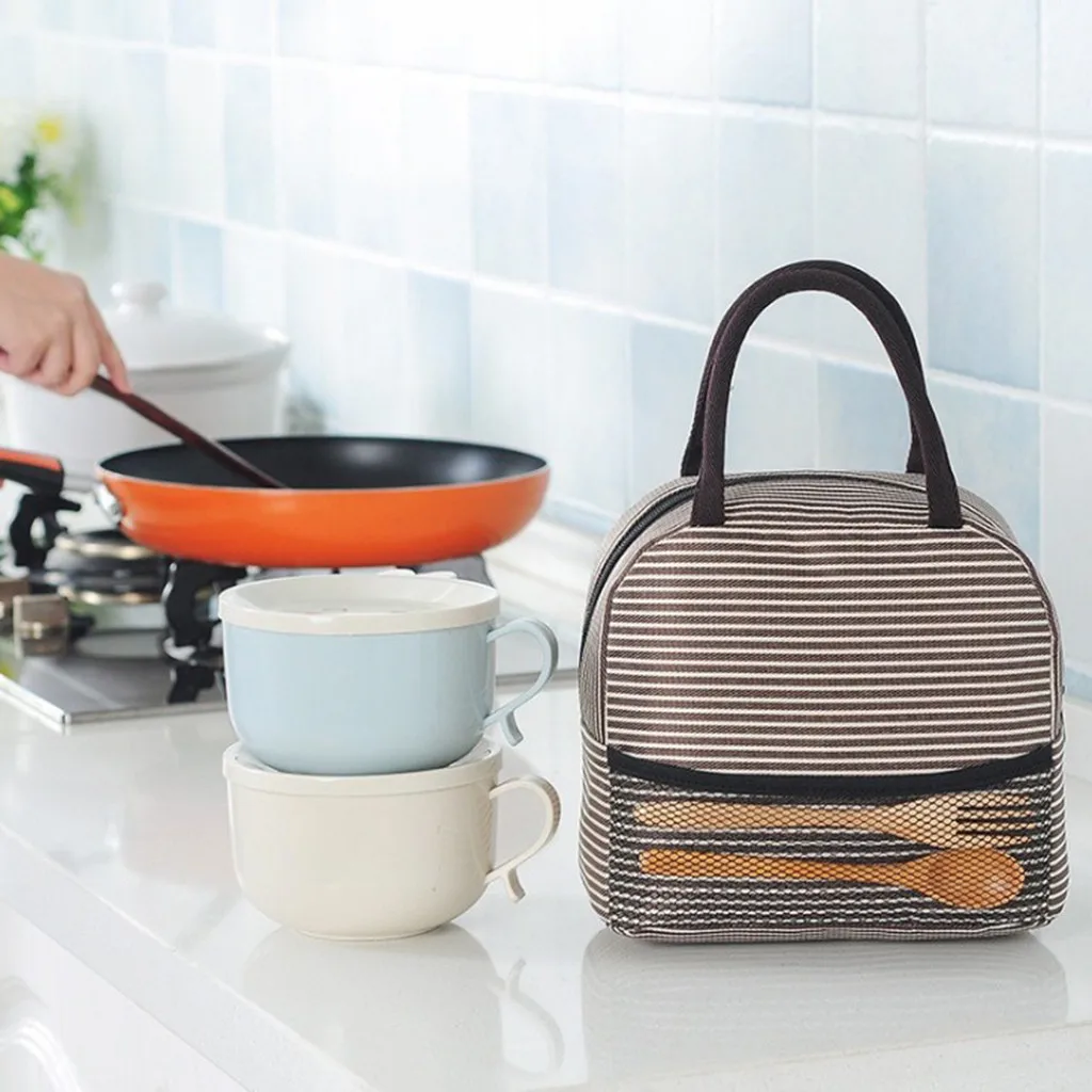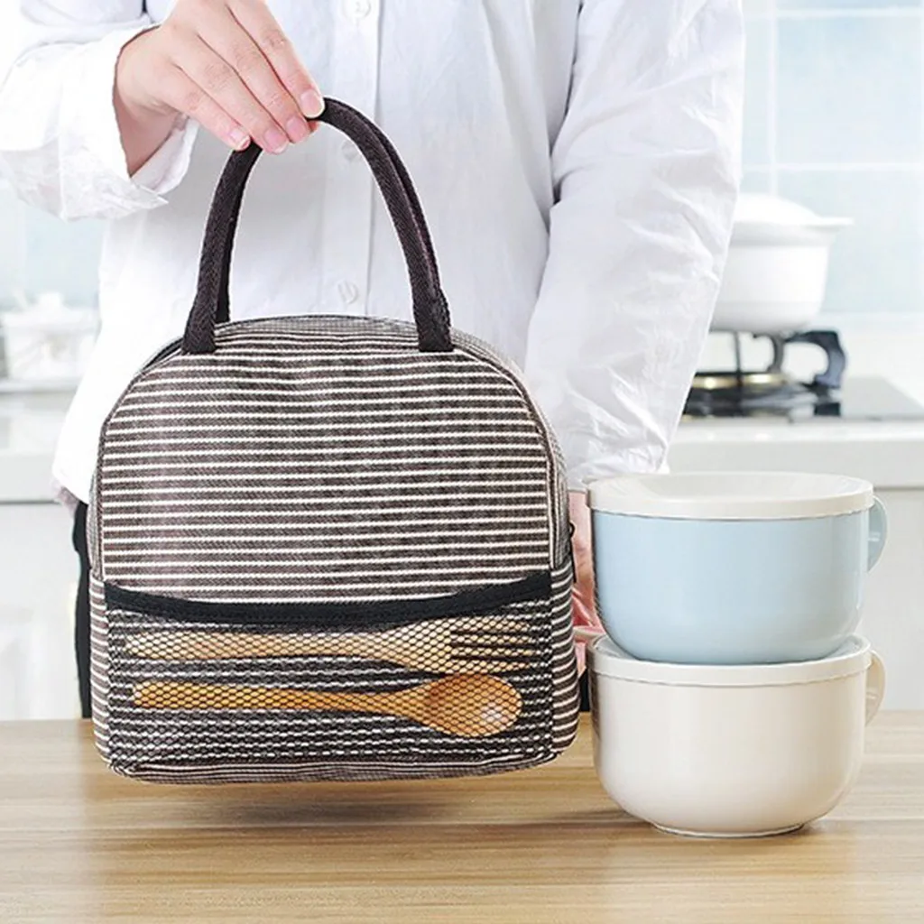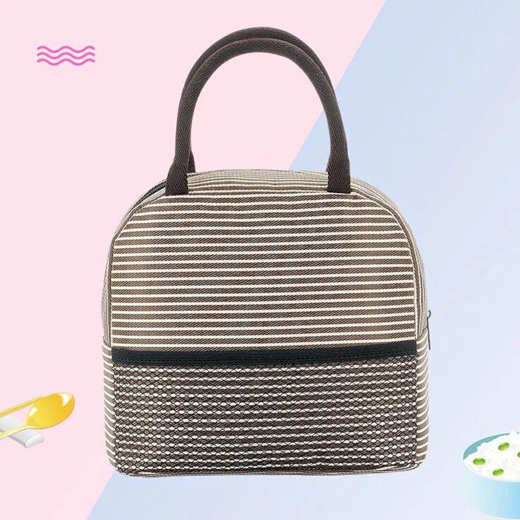 Портативная полосатая сумка для обеда, термохолщовый контейнер для еды, сумка для хранения обеда, сумки