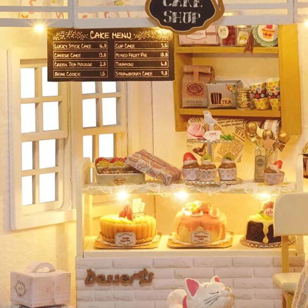 Мини светодиодный Кукольный дом Кофе магазин сборка "сделай сам" модели игрушек для детей Декор Рождественский подарок