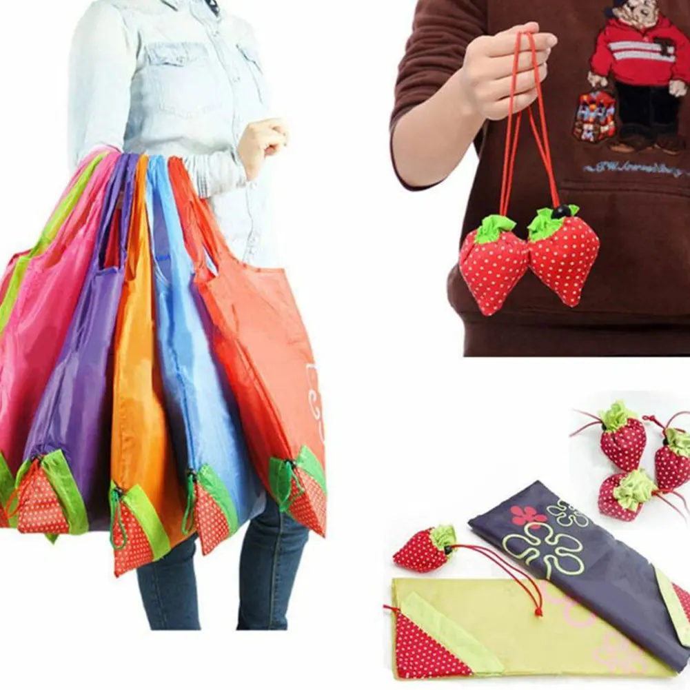 Портативная Экологичная многоразовая сумка с клубникой, складная сумка-тоут для покупок