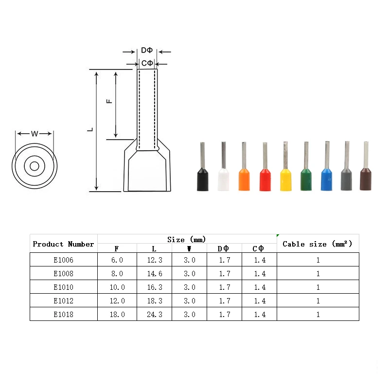 Номер товара: E1006 E1008 E1010 E1012 E1018 Изоляционный Материал: ПВХ Свяжитесь с Материал: Медь Длина чистого Медь: 6/8/10/12/18 мм A.W.G: 18 Кабель Размеры: 1mm² Цвет: красный/желтый/зеленый/белый/оранжевый/серый/синий/черный/коричневый