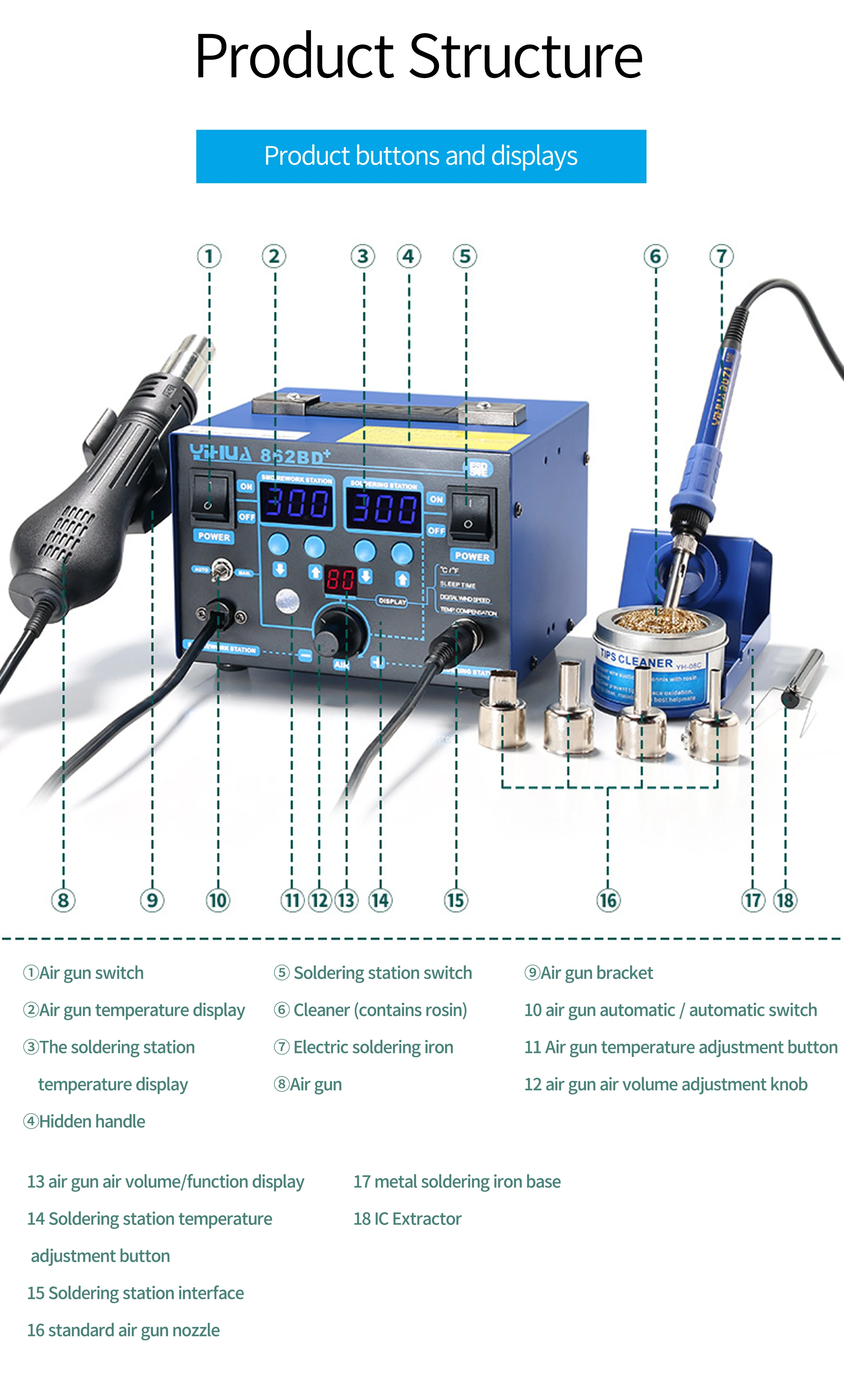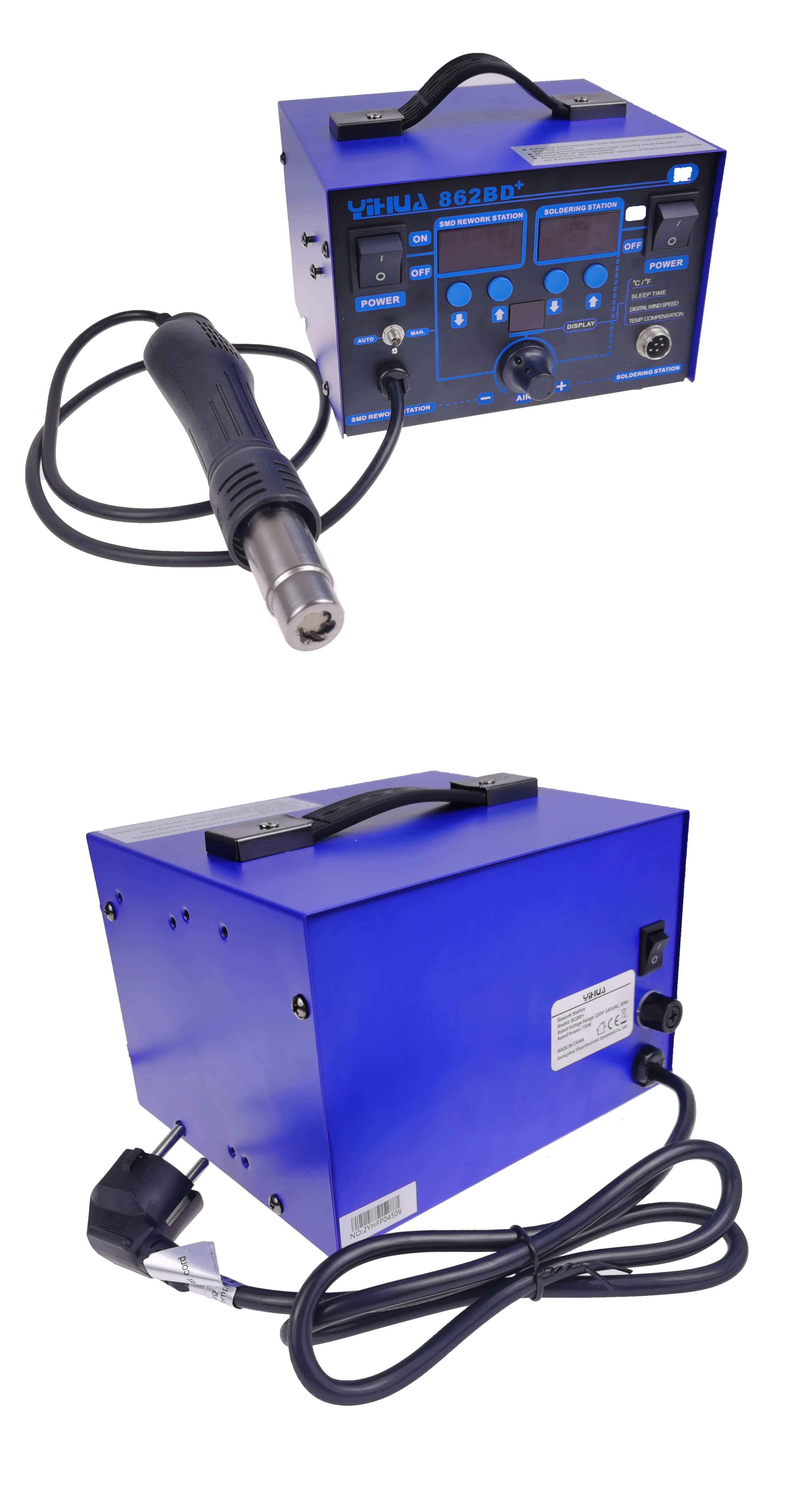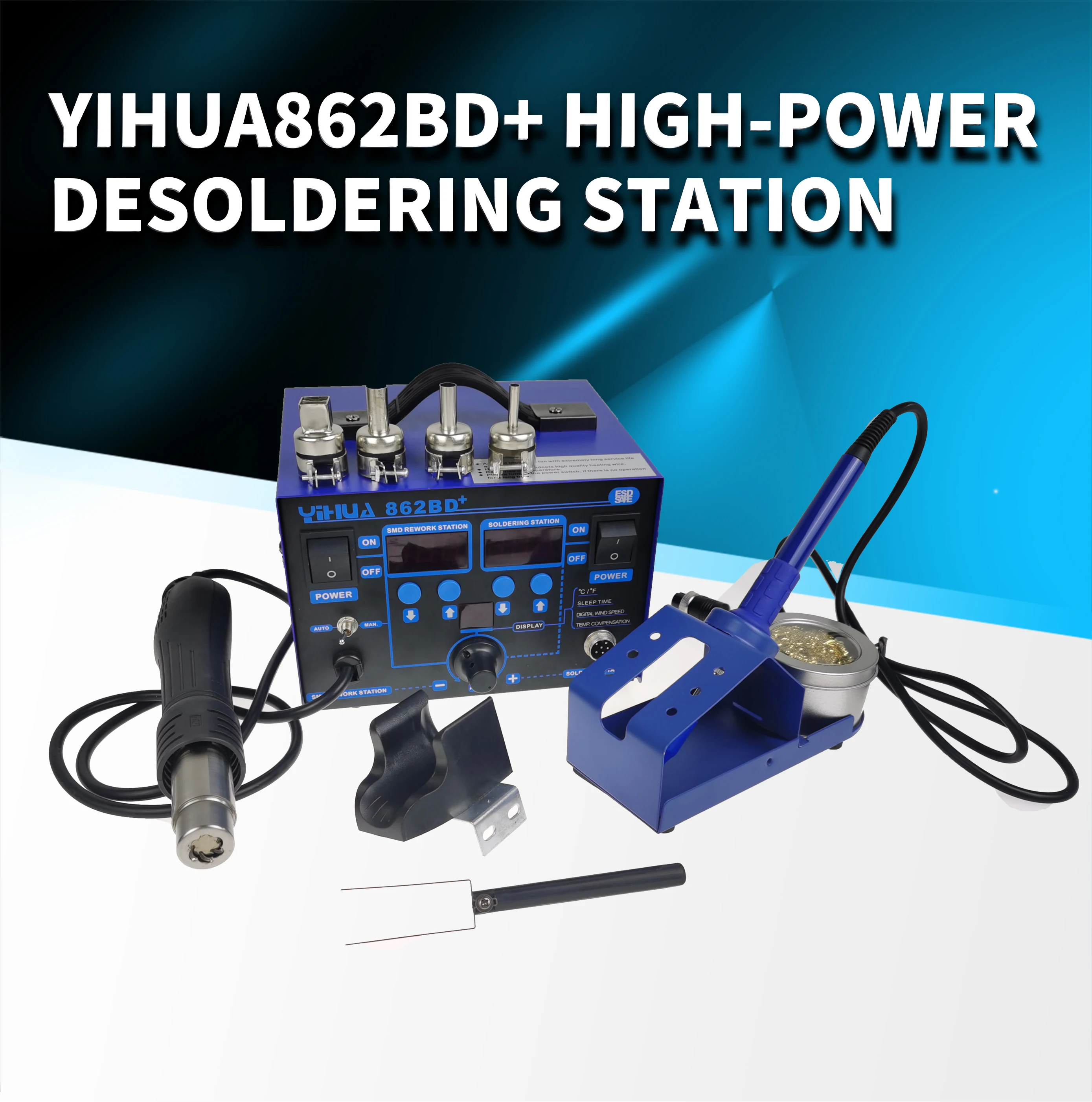 Высокомощная паяльная станция YIHUA 862BD + горячего воздуха с импортным нагревателем, используемым для ремонта телефона и припоя