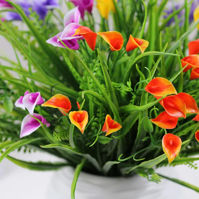 Новый красивый 25 голов/Букет Мини искусственная Калла с листьямиЛилия водные растения Украшение для домашней Комнаты цветок Описание: 100% абсолютно новый и хорошего качества Материал: пластиковый цветок + пластиковый лист Общая длина: 34 см/13,38 дюйма Около 21 головы цветка, 19 листьев на букет Цвет: белый, желтый, оранжевый, фиолетовый, синий Количество: 1 букет Посылка включает в себя: 1 букет искусственных цветов(Ваза в комплект не входит)