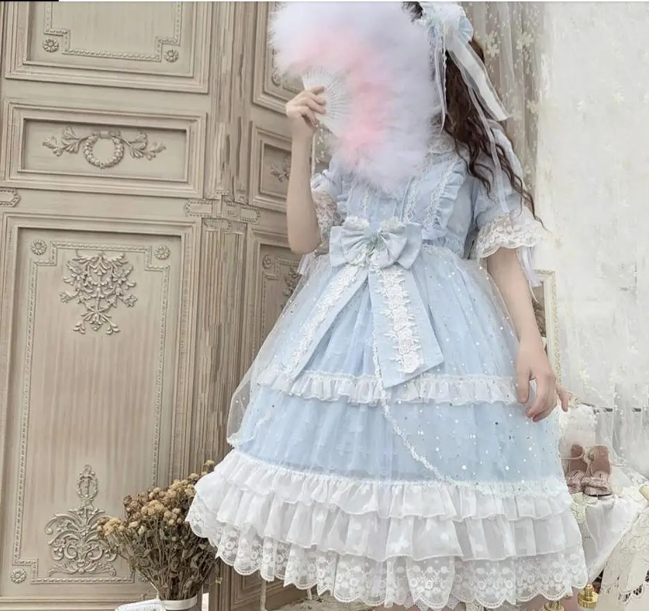 Ретро готический дворец lolita op loli cos, оригинальное милое платье лолиты, летнее платье kawaii для девочек, Новое кружевное платье с бантом и круглым вырезом в викторианском стиле