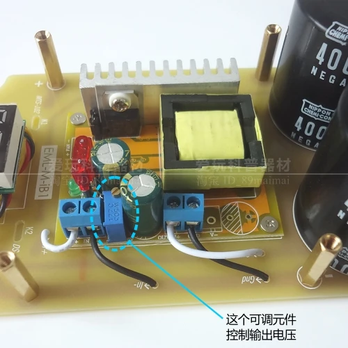 Измените выходное напряжение, поворачивая гайку в верхней части синего мини-потенциометра с помощью отвертки, по часовой стрелке увеличивается, против часовой стрелки уменьшается.