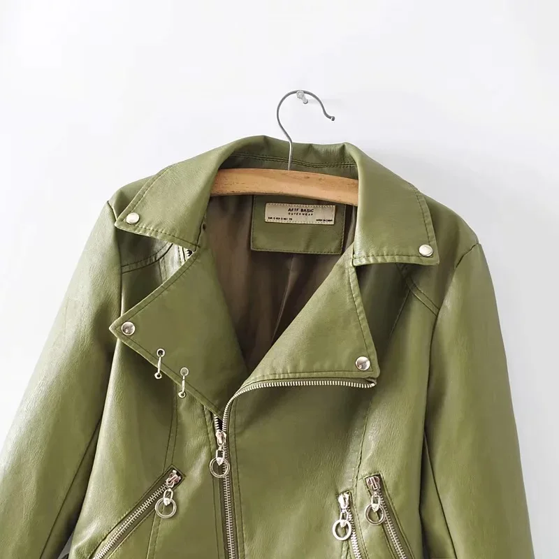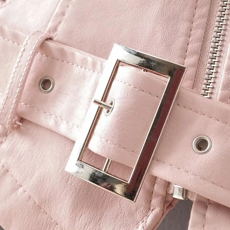 Женская байкерская куртка из искусственной кожи с поясом, с длинными рукавами, на молнии, розовая куртка из искусственной кожи, пальто, Повседневная Базовая осенняя куртка, наряд