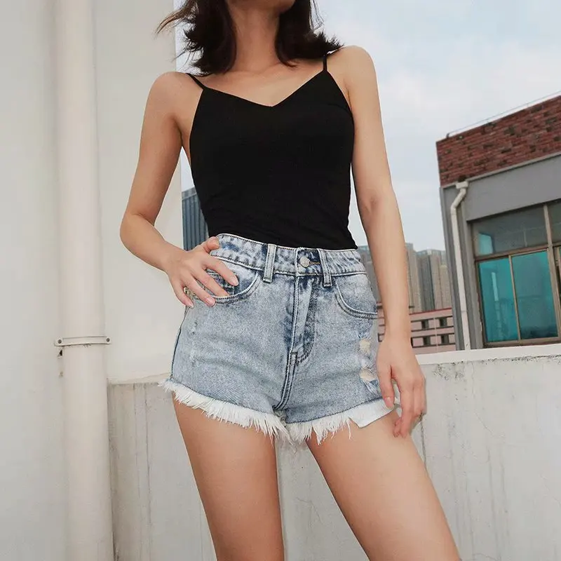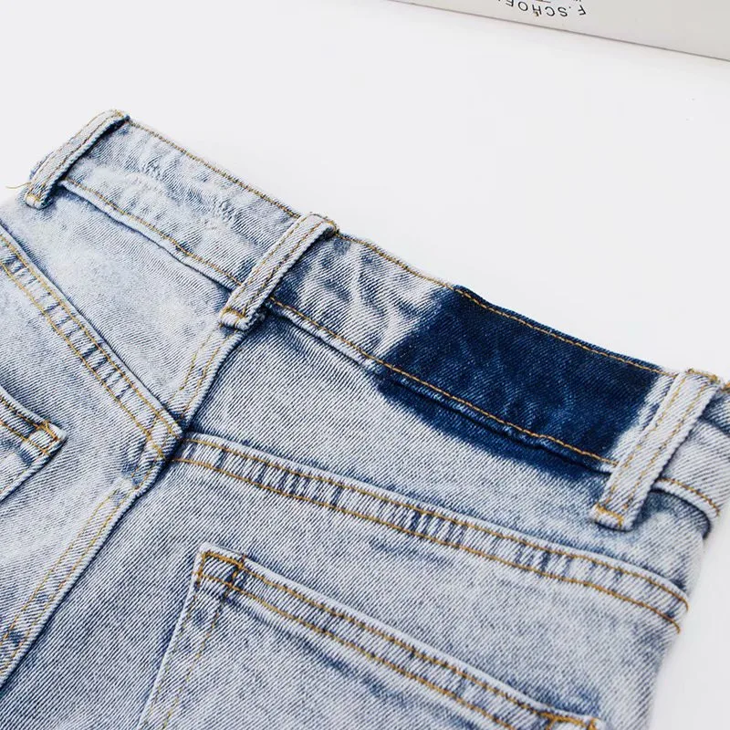 Женские рваные джинсы WISHBOP темно-синие джинсовые брюки с дырками укороченные
