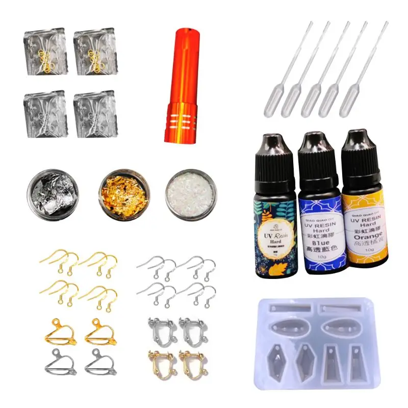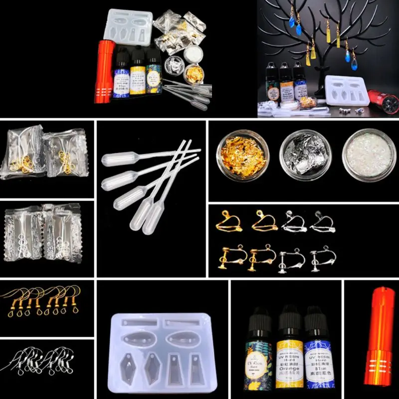В комплект входят крючки для ушей, Золотая фольга, эпоксидная смола, пайетки и многие другие материалы для удовлетворения ваших потребностей в производстве.