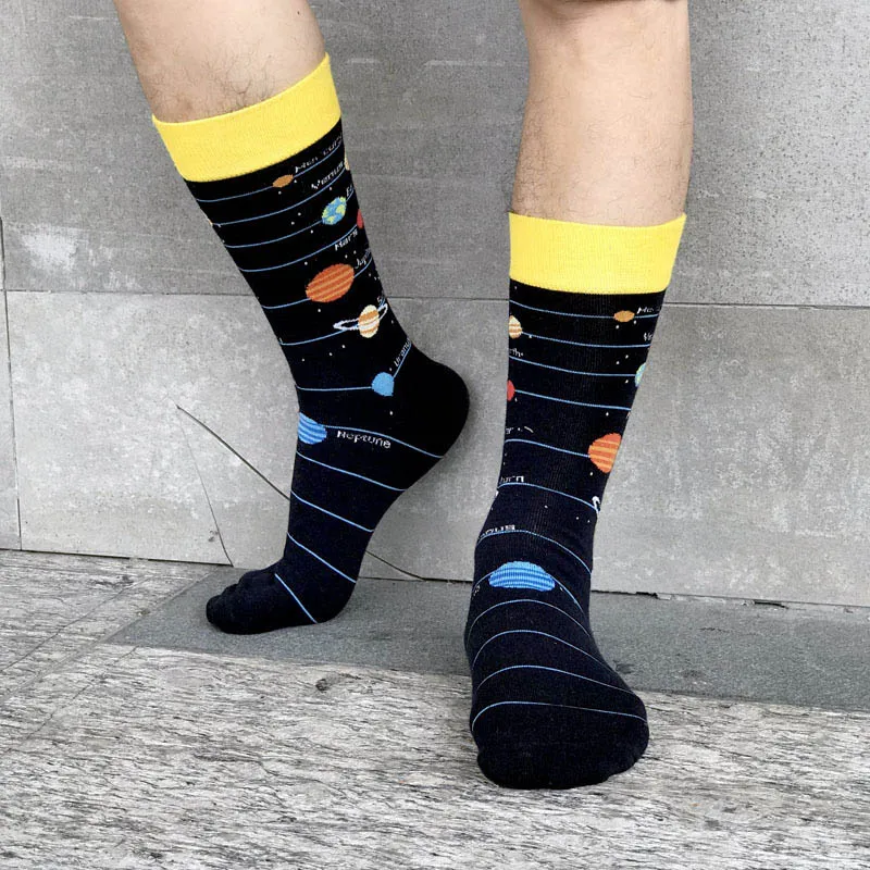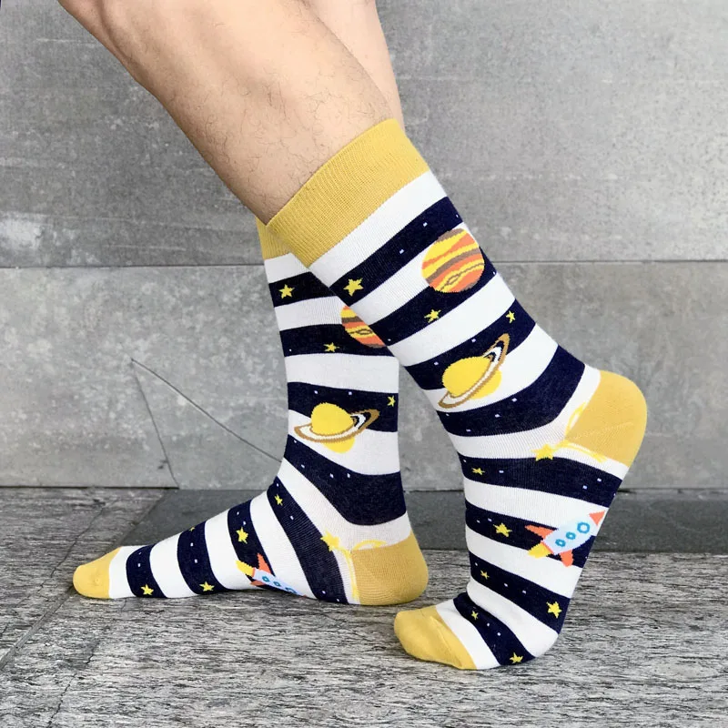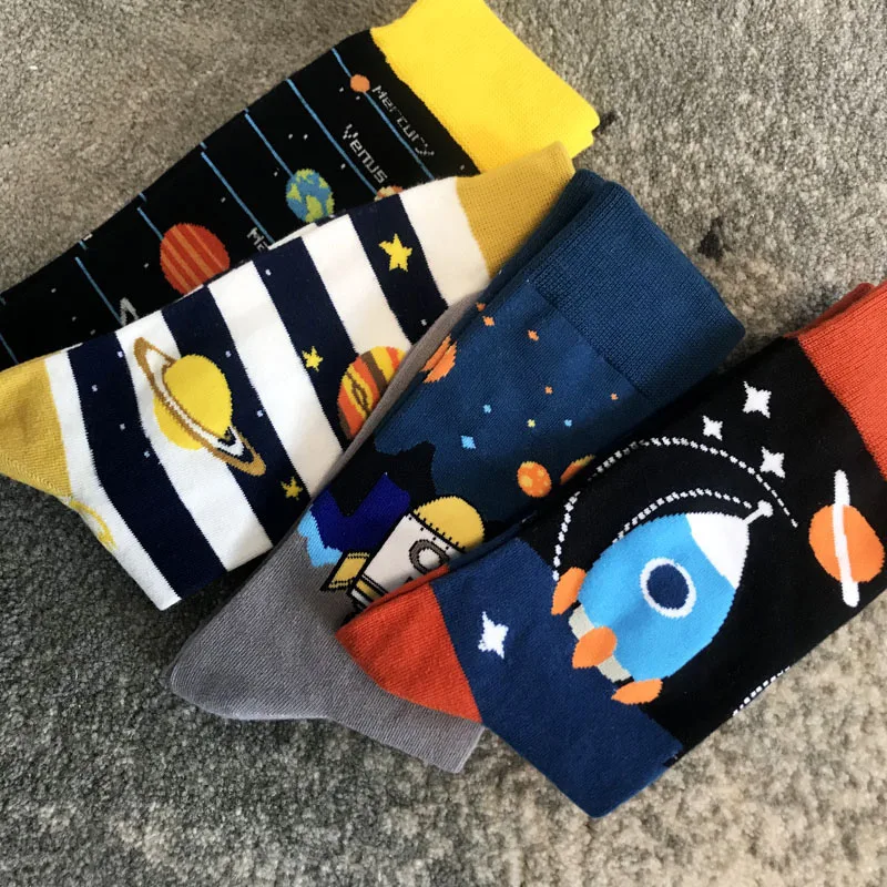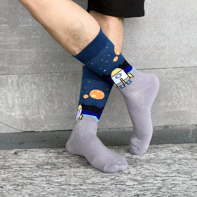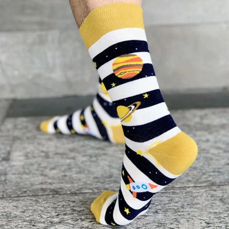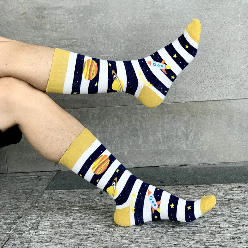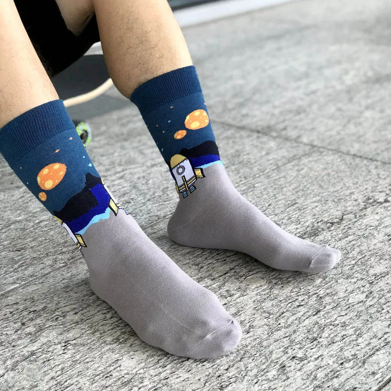 [HEPOSCKONE] Новый дизайн скейтборд унисекс носки креативные космические ракеты Alien Planet хлопчатобумажные забавные носки мужские Chaussette Homme