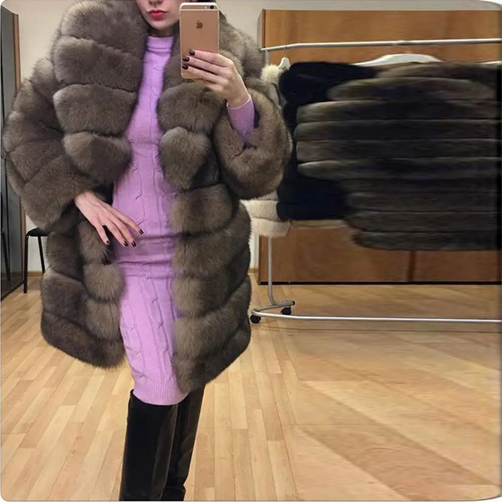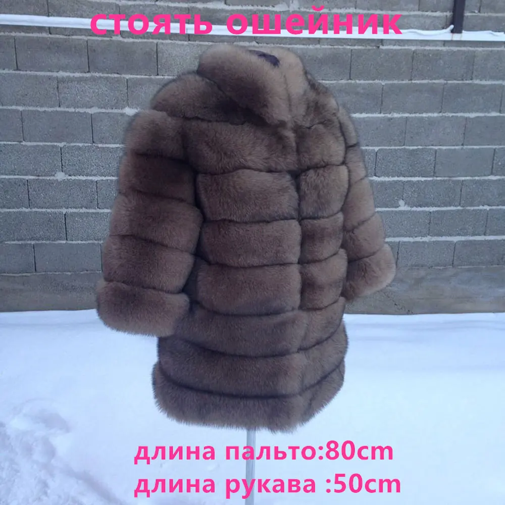 Женское пальто зимнее кожаное с воротником из натурального Лисьего меха зимний