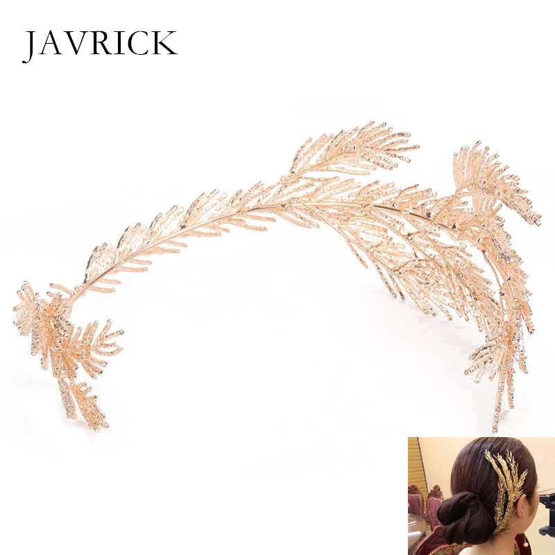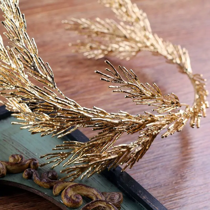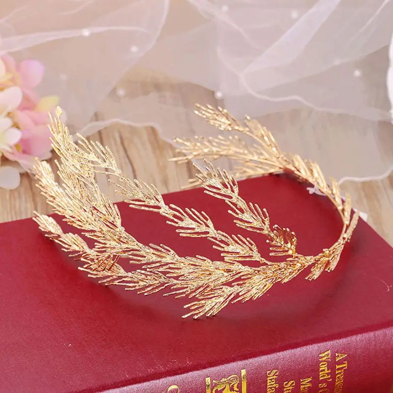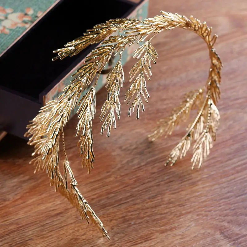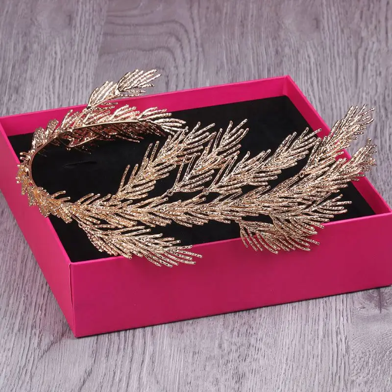 Короны в стиле барокко головная повязка с золотыми листьями ювелирные изделия для волос Тиара, свадебное головное украшение для женщин леди индивидуальное украшение для волос подарок