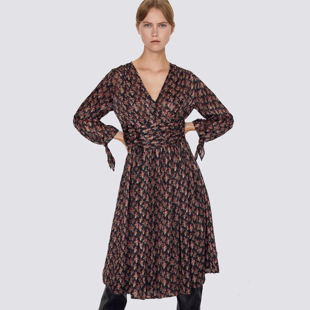 Женское платье с одним открытым плечом серебристое длинным рукавом и высоким